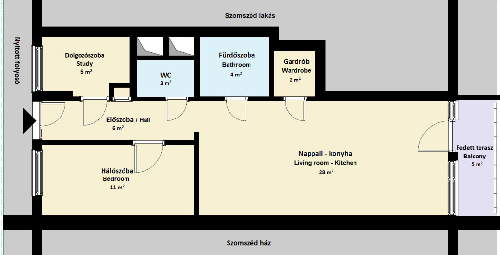 • Hálószoba + külön dolgozószoba (vagy vendégszoba)