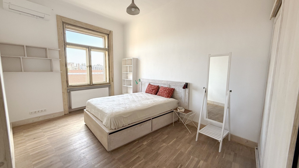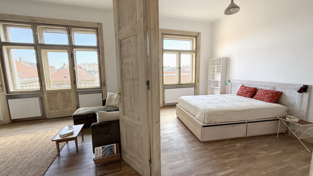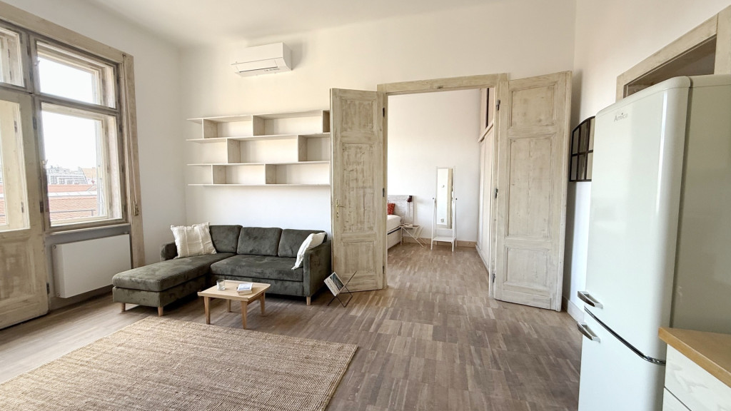 A Deák Ferenc tértől néhány perc sétányira az V. kerület egyik legszebb terén hosszú távra kiadó egy teljes körűen egyedi hangulatúra felújított, 2 szobás, erkélyes panorámás kilátású lakás. BÚTOROZOTT, KISÁLLATTAL költözhető.