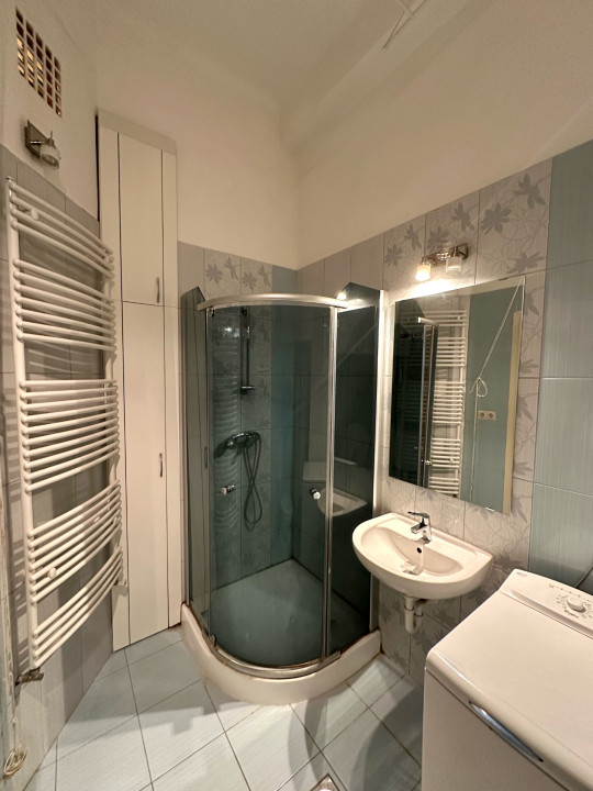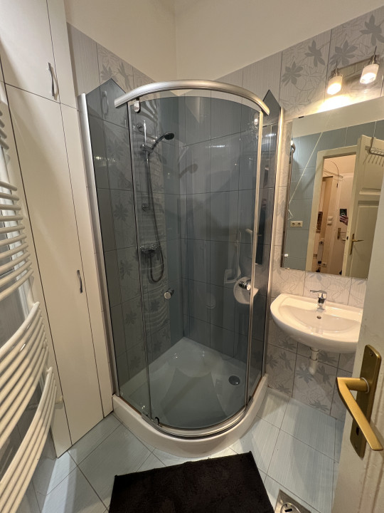 Helyiségei: előtér, fürdőszoba + Wc (mosógép van), felszerelt konyha (micro, villanytűzhely, hűtő), az előtérből 2 irányba nyíló, külön bejáratú szoba. Az utcára néző szoba 6 nm fekvő galériával ellátott, valamint itt került kialakításra az étkező is. A másik szoba a belső udvarra néz. Elosztásának, valamint központi elhelyezkedésének köszönhetően kiválóan alkalmas akár 2 diák, vagy egy pár együttélésére is.