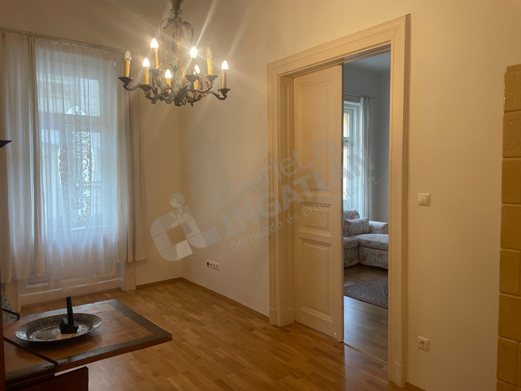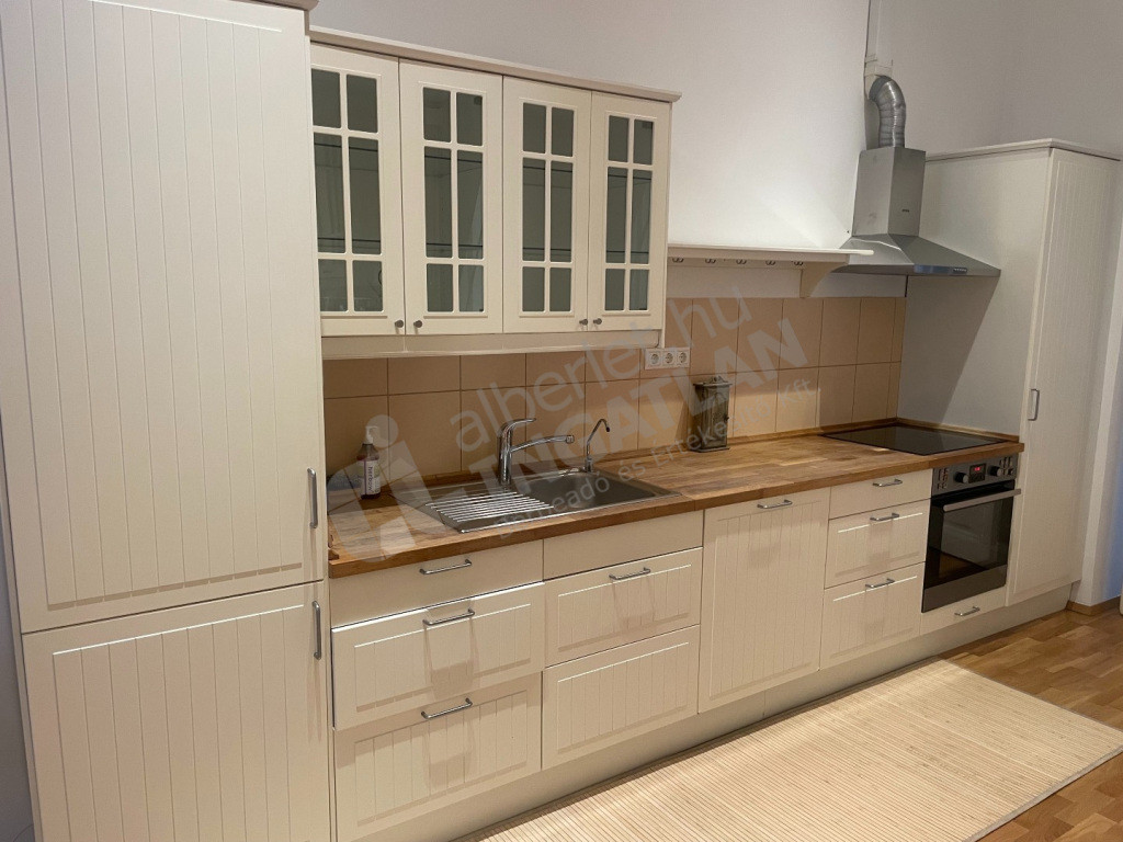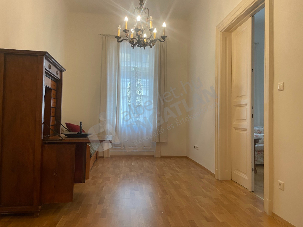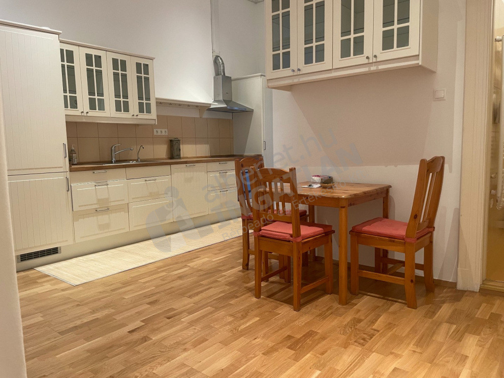Lakás felszereltsége: konyha teljesen gépesített, részben bútorozott (igény esetén bútorozás megbeszélés tárgyát képzi), a képen látható antik írószekrény nem tartozik a lakáshoz