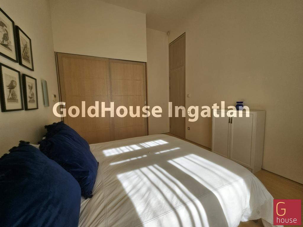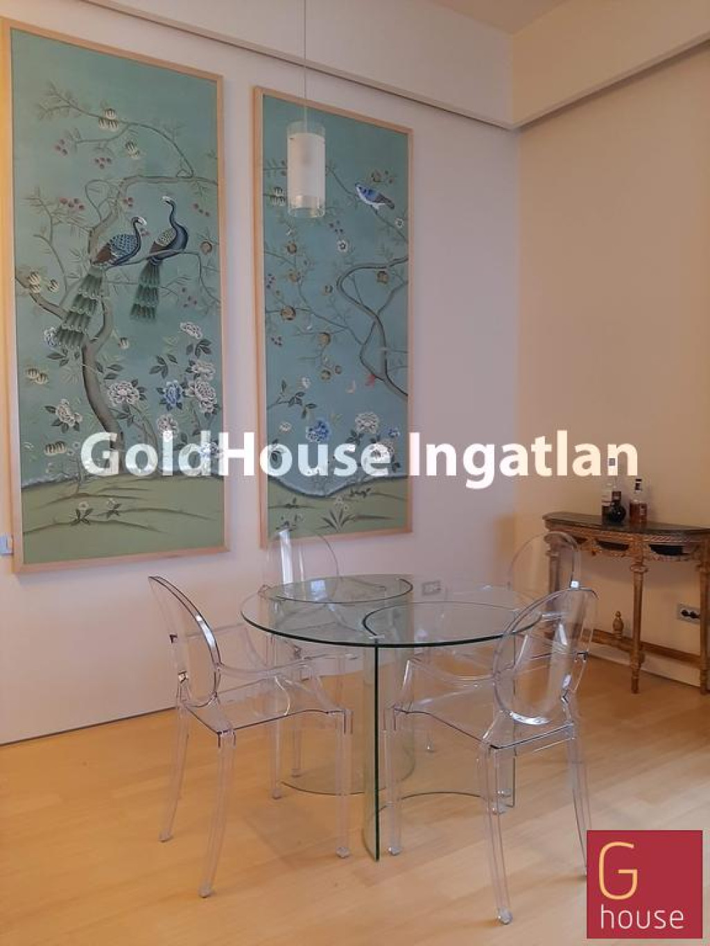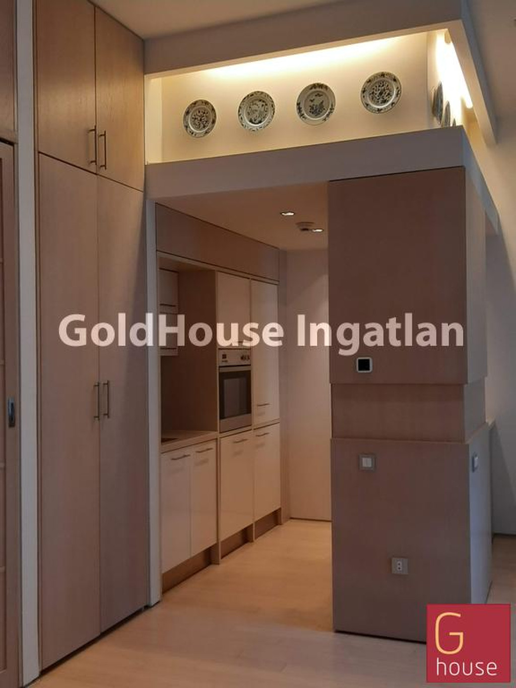 A három magas, klasszikus stílusú ablak (kettő a nappaliban és egy a hálószobában) mind utcára néz, déli fekvésű, és kék taft teljes hosszúságú sötétítő függönyökkel és fehér vászonnal díszített. A lakásban a nappaliban és a hálószobában teljes falhosszúságú, padlótól a mennyezetig érő beépített szekrények találhatók, és jól elhelyezett reflektorok mindenhol. A berendezéshez tartozik egy king size ágy; egy egyedi, 110 cm-es kerek üvegasztal 4 akril, Philip Stark ihlette szellemszékkel; egy Csehországból importált kristálycsillár; és tíz 18. századi kínai export porcelántányér, amelyek a konyha felett vannak elhelyezve és megvilágítva. A konyhában hűtőszekrény, mosogatógép, mosógép, mikrohullámú sütő, elektromos főzőlap és sütő található. A fürdőszobában egy angol hosszú kád található zuhanytartóval, WC és bidé, valamint egy egyedi, nagyméretű tükör és egy tágas, világos tölgyfa szekrény a piperecikkek számára.
