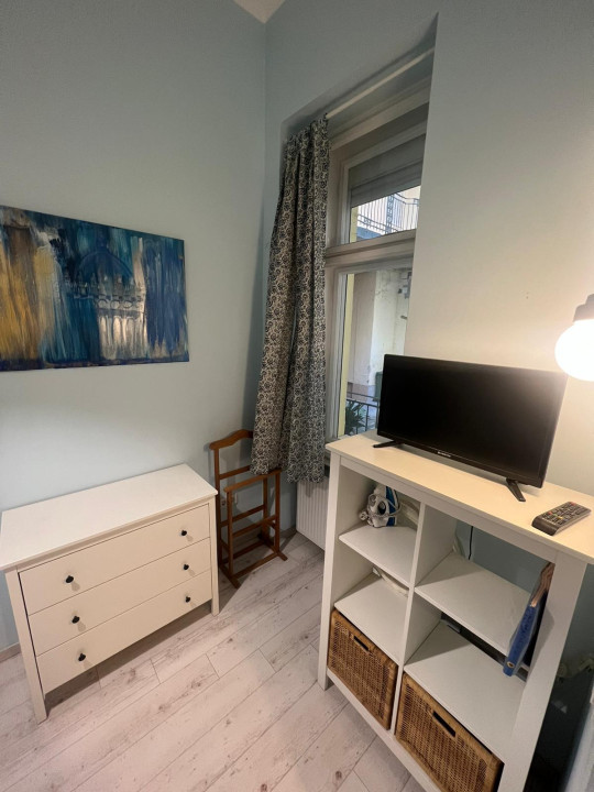 V. VÁCI utcánál lévő sétáló utcában KIADÓ, felújított, 38 nm-es, amerikai konyhás, hálószobás, cirkófűtéses, bútorozott, gépesített, zuhanyozós, belső udvarra néző lakás. Nappaliban kihúzható ülőgarnitúra, TV, gépesített amerikai konyha. Hálószobában franciaágy, TV, polcos, fiókos szekrény. Előszobában beépített akasztós tároló. Zuhanyozós fürdőszoba WC-vel. Fiatalok, idősek, vállalkozók részére is kiválóan alkalmas. Belváros kellős közepén, jó közlekedéssel. Biztonságos, éttermek, kávézók, turisták által igen kedvelt.