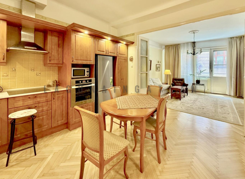 Pest V.ker Belváros emeleti 64 nm-es 2 szobás erkélyes bútorozott lakás kiadó