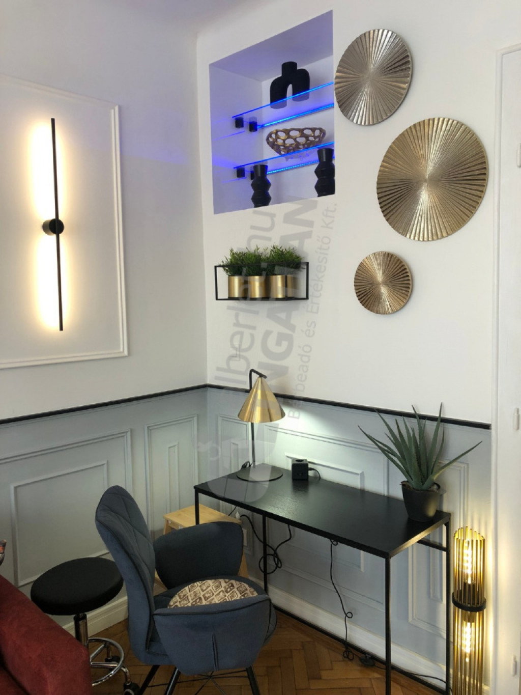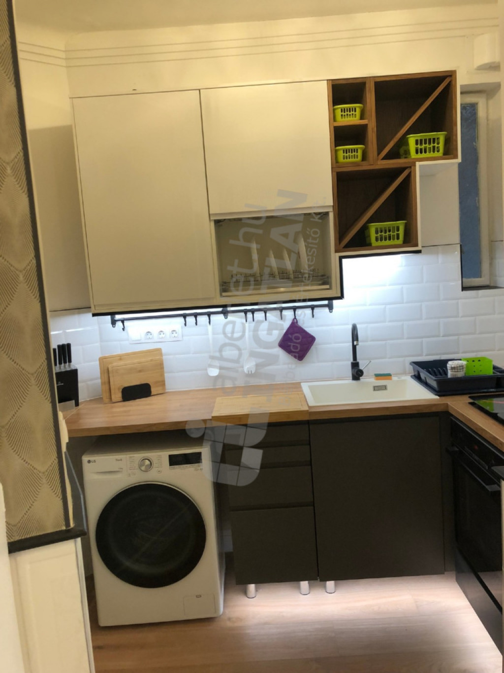 Légkondi, elektromos redőnyök, tanuló/home office sarok, mosó-szárítógép, gépesített konyha.
