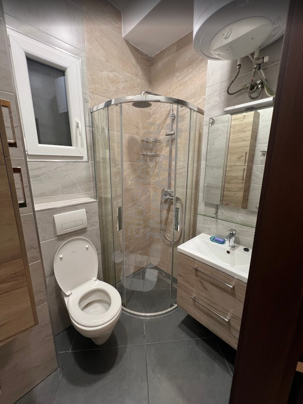 Mindkét fürdőszobában található WC és mosdó. Az egyikben zuhanyzó, a másikban fürdőkád van.