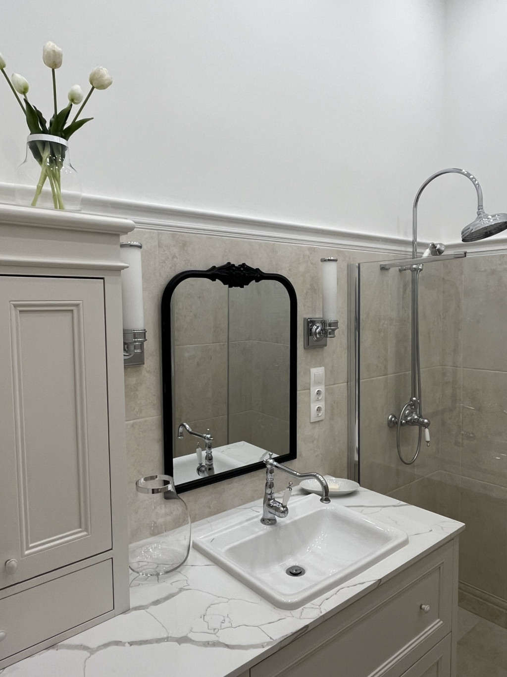 • Custom-made solid oak and larch wood furniture crafted by a carpenter