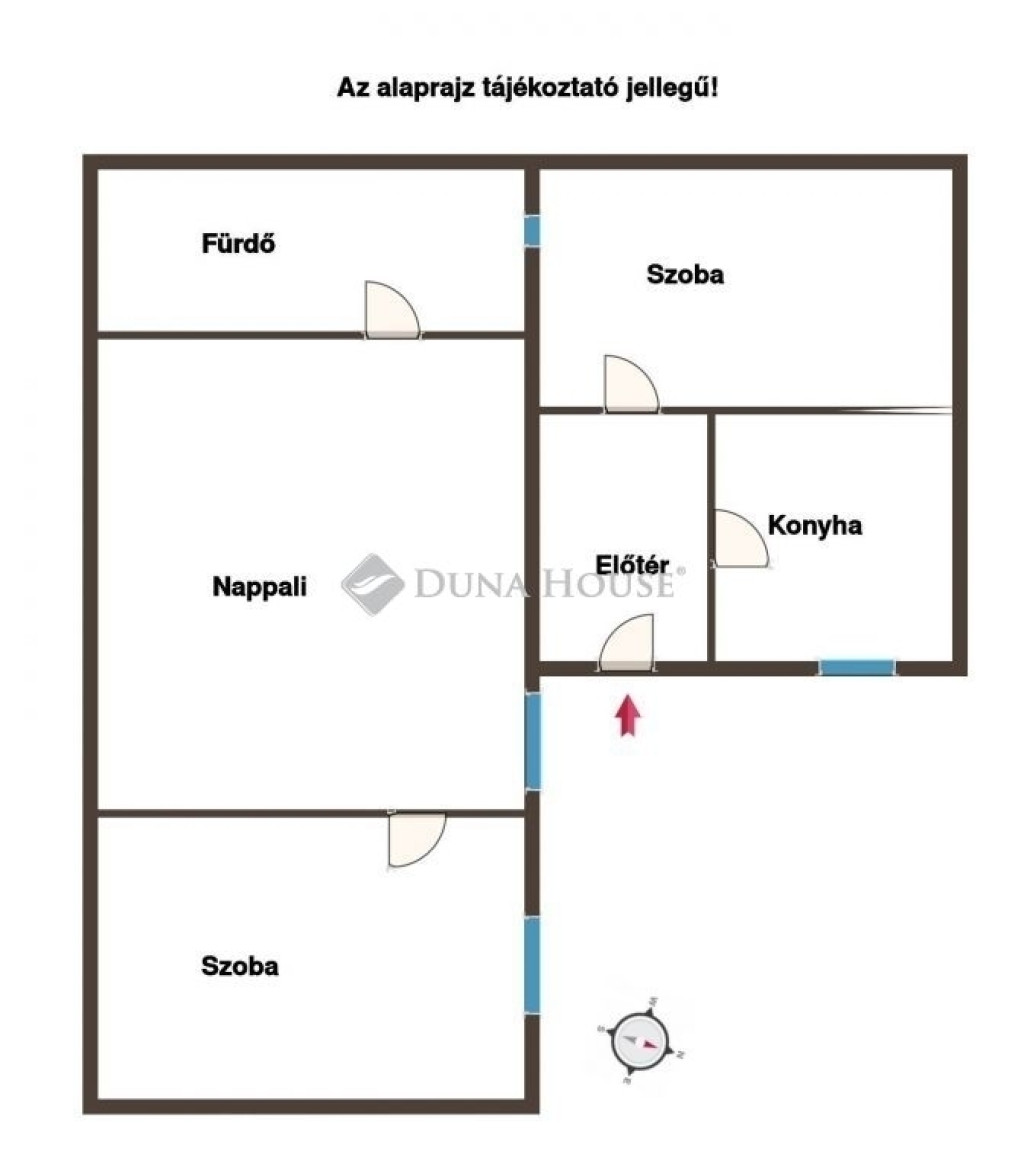 A biztonságot erősíti a bejárati ajtó előtt kialakított, 1,5 m2-es, zárható vasráccsal védett előtér. A lakás elosztása funkcionális: a nappali mellett két, egymástól független, külön nyíló szoba található. A konyha kompakt méretű, ugyanakkor a helykihasználás szempontjából praktikus kialakítású.