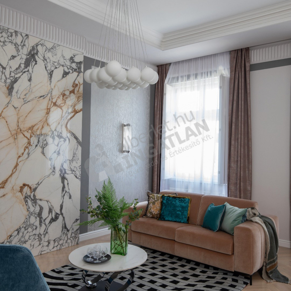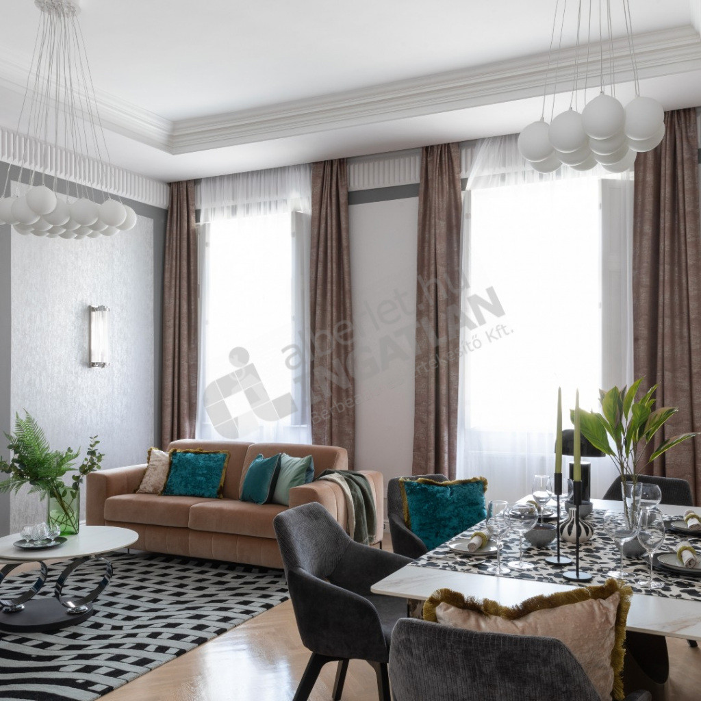 Lakberendező által igényesen kialakított enteriőrrel, prémium bútorokkal és számos beépített szekrénnyel.