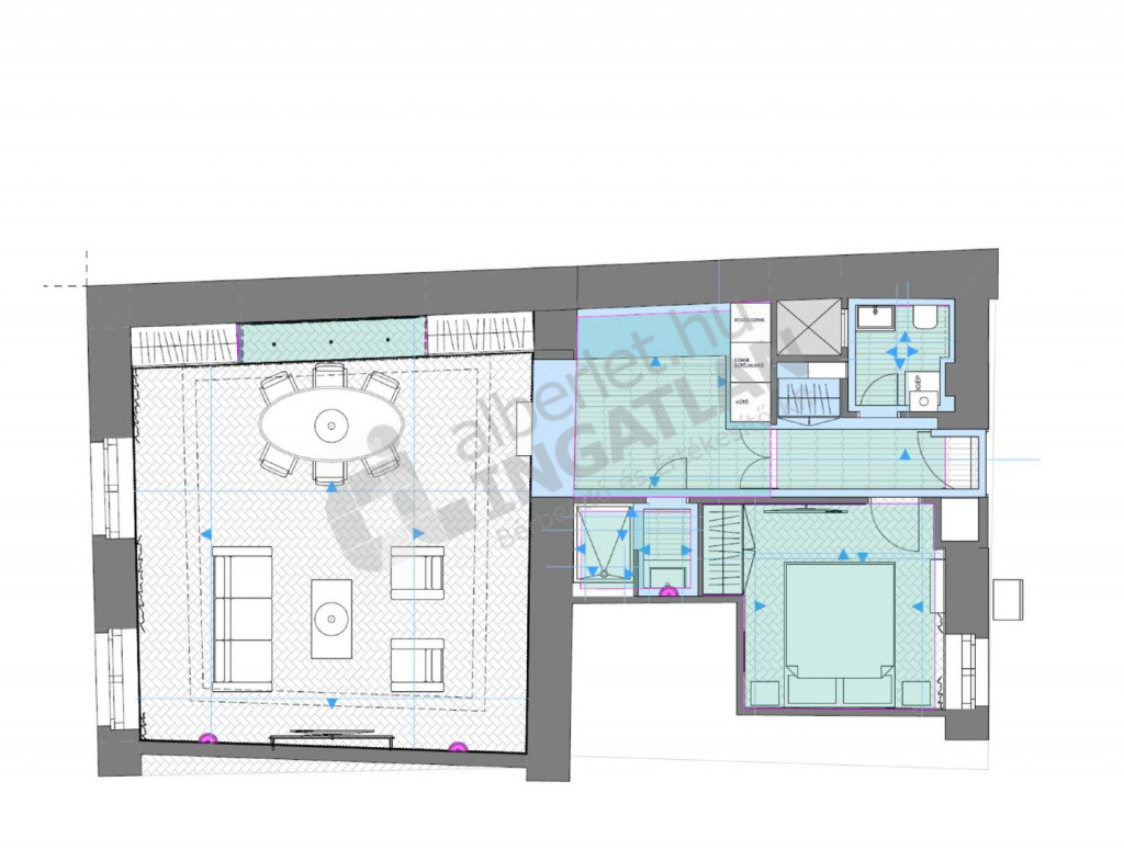 Egy felújított, elegáns, sétálóutcákkal körülvett társasház negyedik emeletén kiadó egy igazán különleges különleges hangulatú lakást.