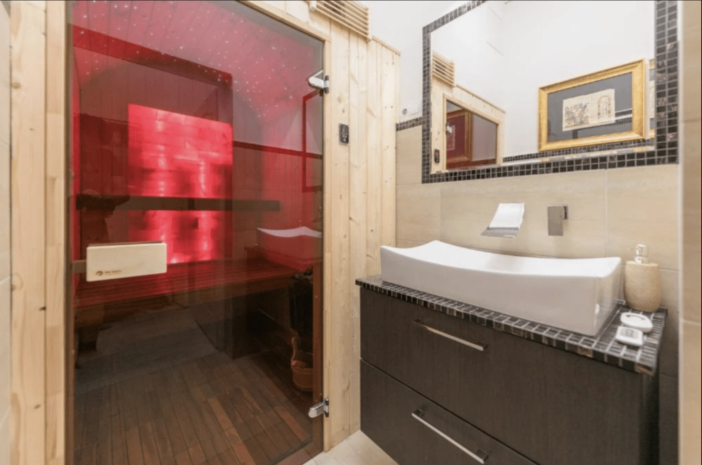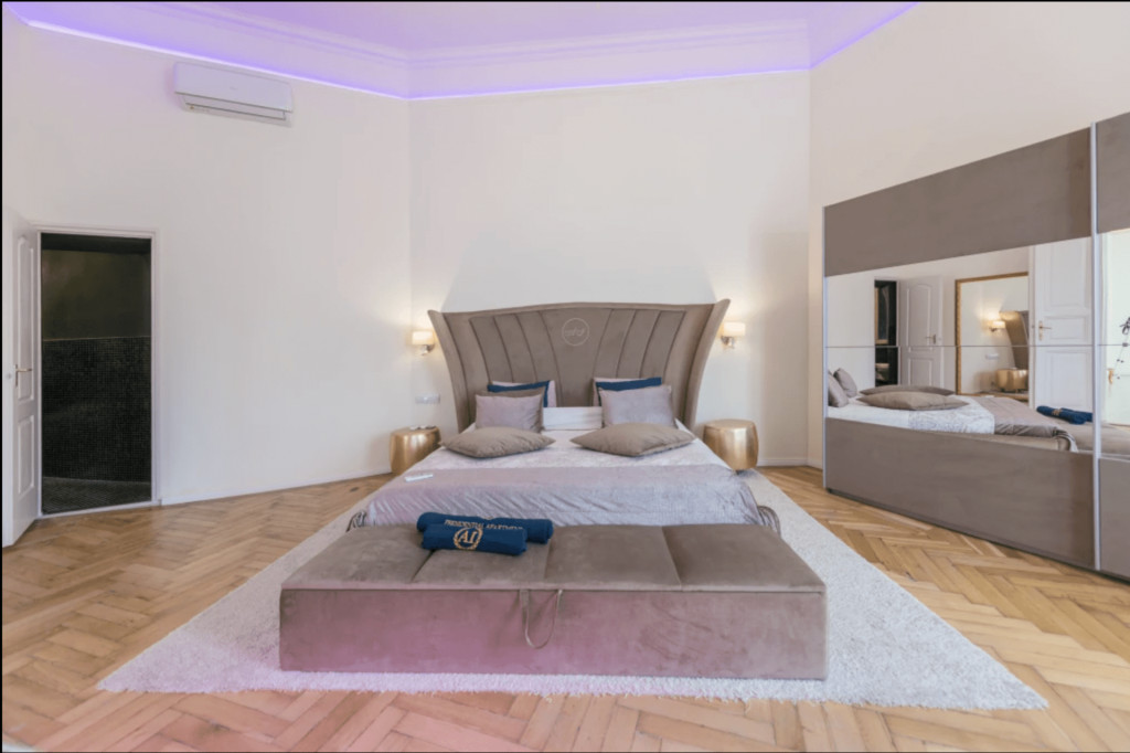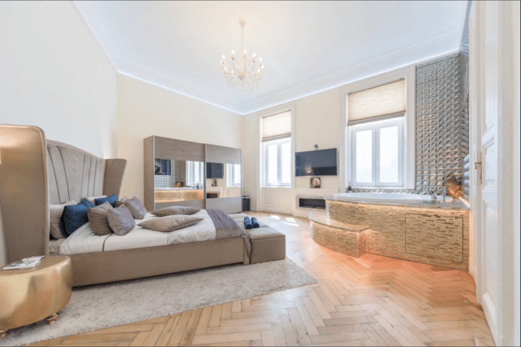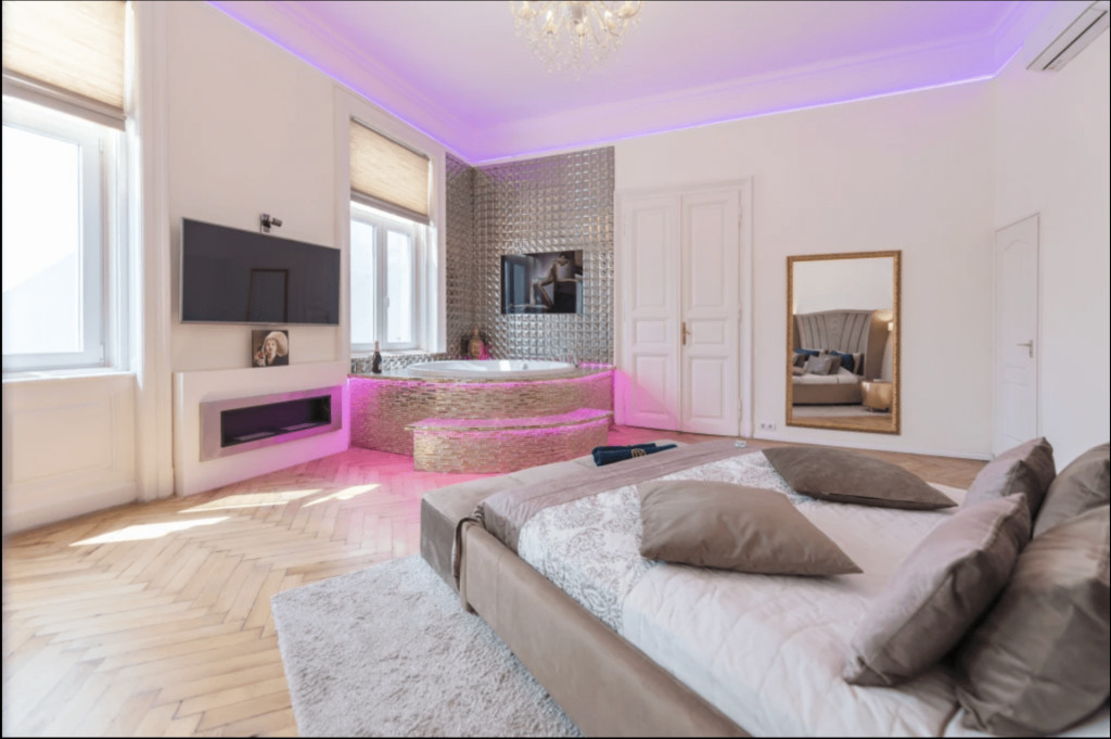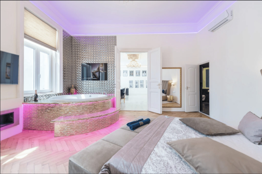 Az apartmanhoz saját szauna és jacuzzi is tartozik, amelyek tovább növelik exkluzivitását és kényelmét.