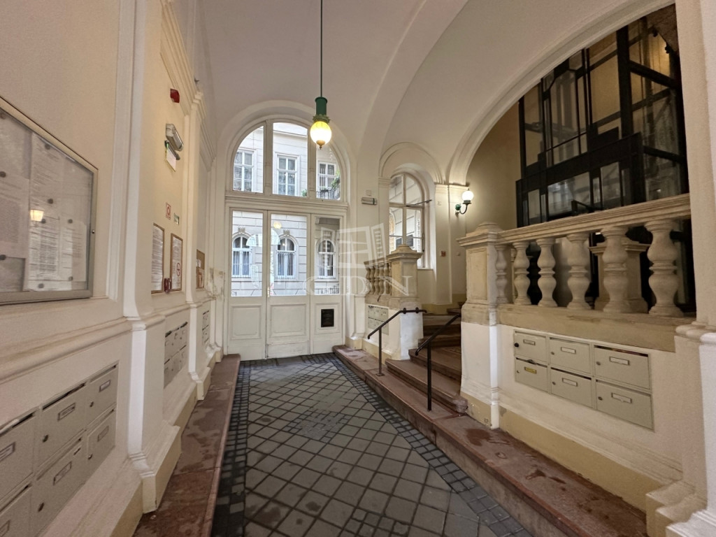A társasház igényesen, korhűen felújított, jó lakóközösséggel.