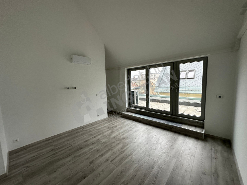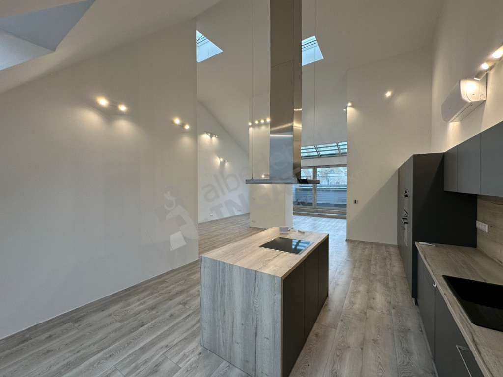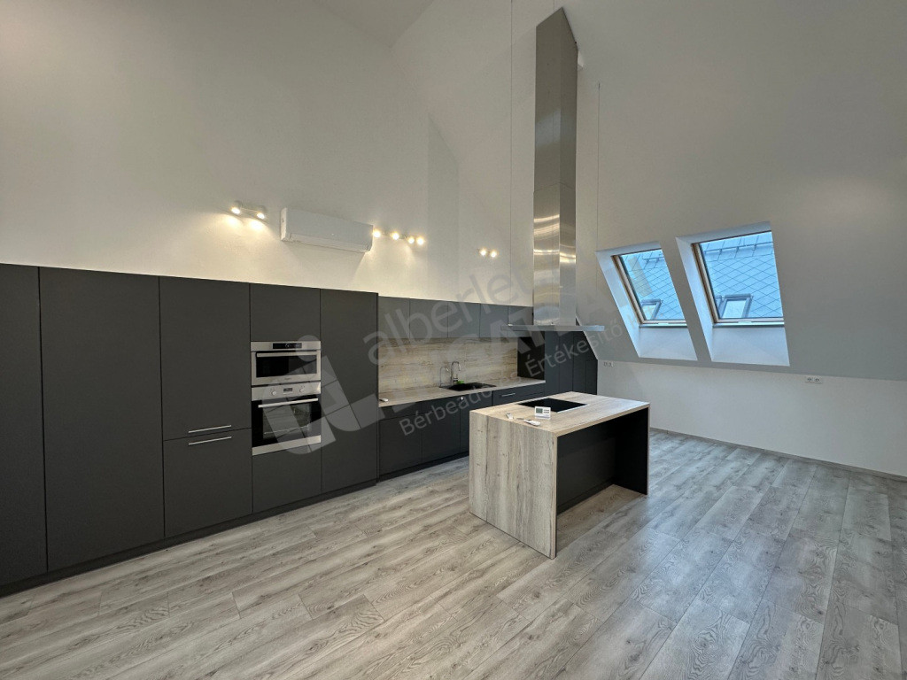 Vadonatúj, exkluzív penthouse kiadó, iroda vagy lakhatás céljára is. Két hálószoba + nappali.