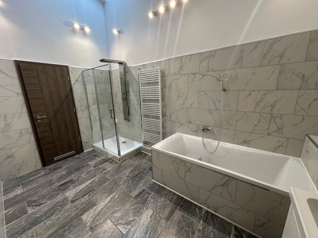 Access to the bathroom is possible both from the living room and from a small corridor (which leads to the parents halo room). Of course, it is also equipped with a bathtub and shower cabin, as well as a separate restroom with a hand basin.