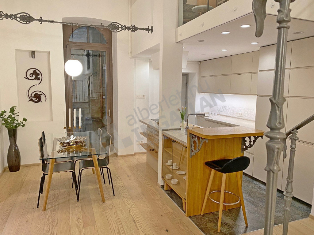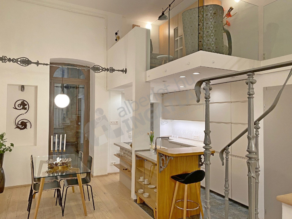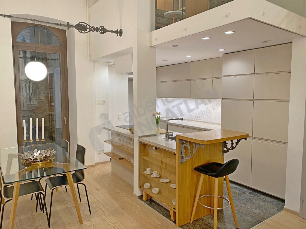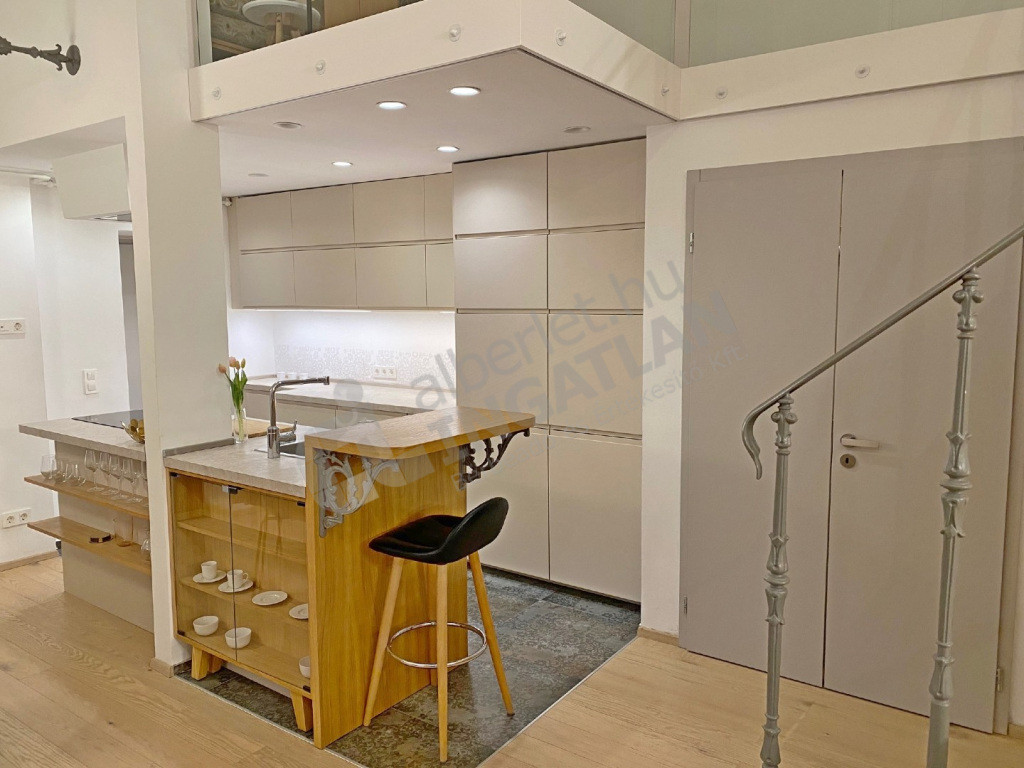 A VI.kerületben az Andrássy úton kiadó egy teljeskörűen FELÚJÍTOTT, lakberendező által IGÉNYESEN BERENDEZETT és GÉPESÍTETT, 51 nm-es, magasfsz-i, KLÍMÁS, 1 szoba ( konyha, nappali plusz dolgozósarok ) + galériás( a galérián egy hálószoba illetve egy vendégrész kapott kialakítást ) lakás.