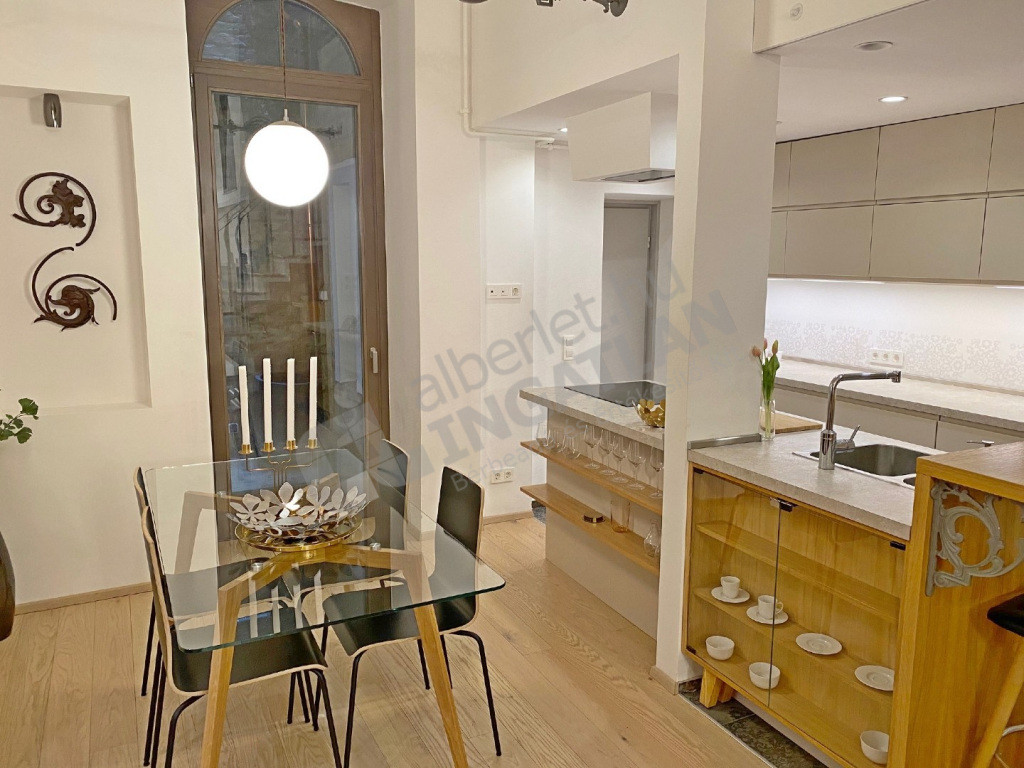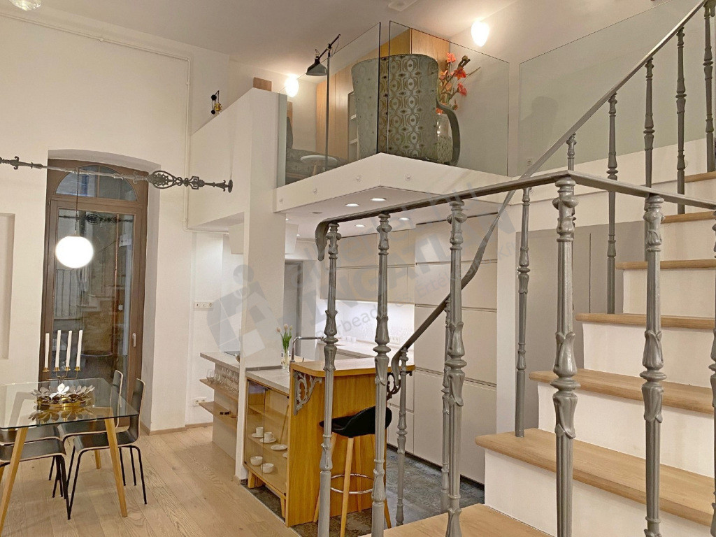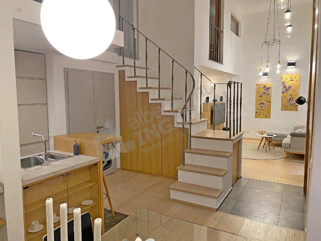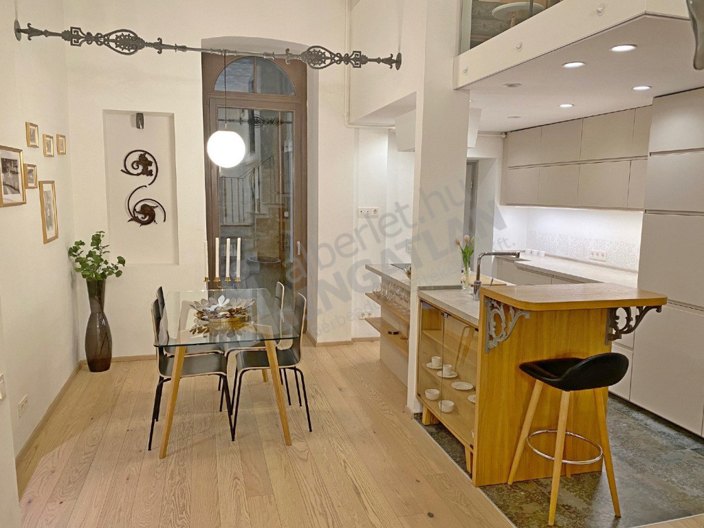 A VI.kerületben az Andrássy úton kiadó egy teljeskörűen FELÚJÍTOTT, lakberendező által IGÉNYESEN BERENDEZETT és GÉPESÍTETT, 51 nm-es, magasfsz-i, KLÍMÁS, 1 szoba ( konyha, nappali plusz dolgozósarok ) + galériás( a galérián egy hálószoba illetve egy vendégrész kapott kialakítást ) lakás.