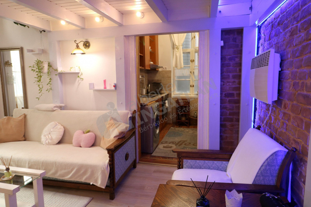 Kiadó az Opera szomszédságában, az Andrássy úton egy 25+10 nm-es, Teljeskörűen Felújított, Bútorozott és Gépesített, 1 szobás, Álló galériás lakás!