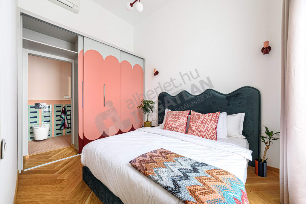 Az ingatlan kiváló elrendezésű: két külön nyíló hálószobával és két fürdőszobával rendelkezik, így ideális választás akár párok, családok vagy üzleti bérlők számára is. A lakás rendkívül világos, napfényes, kellemes, élhető terekkel, amelyek harmonikus és otthonos atmoszférát biztosítanak.