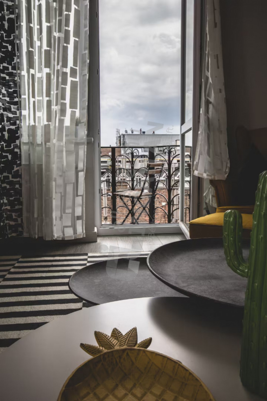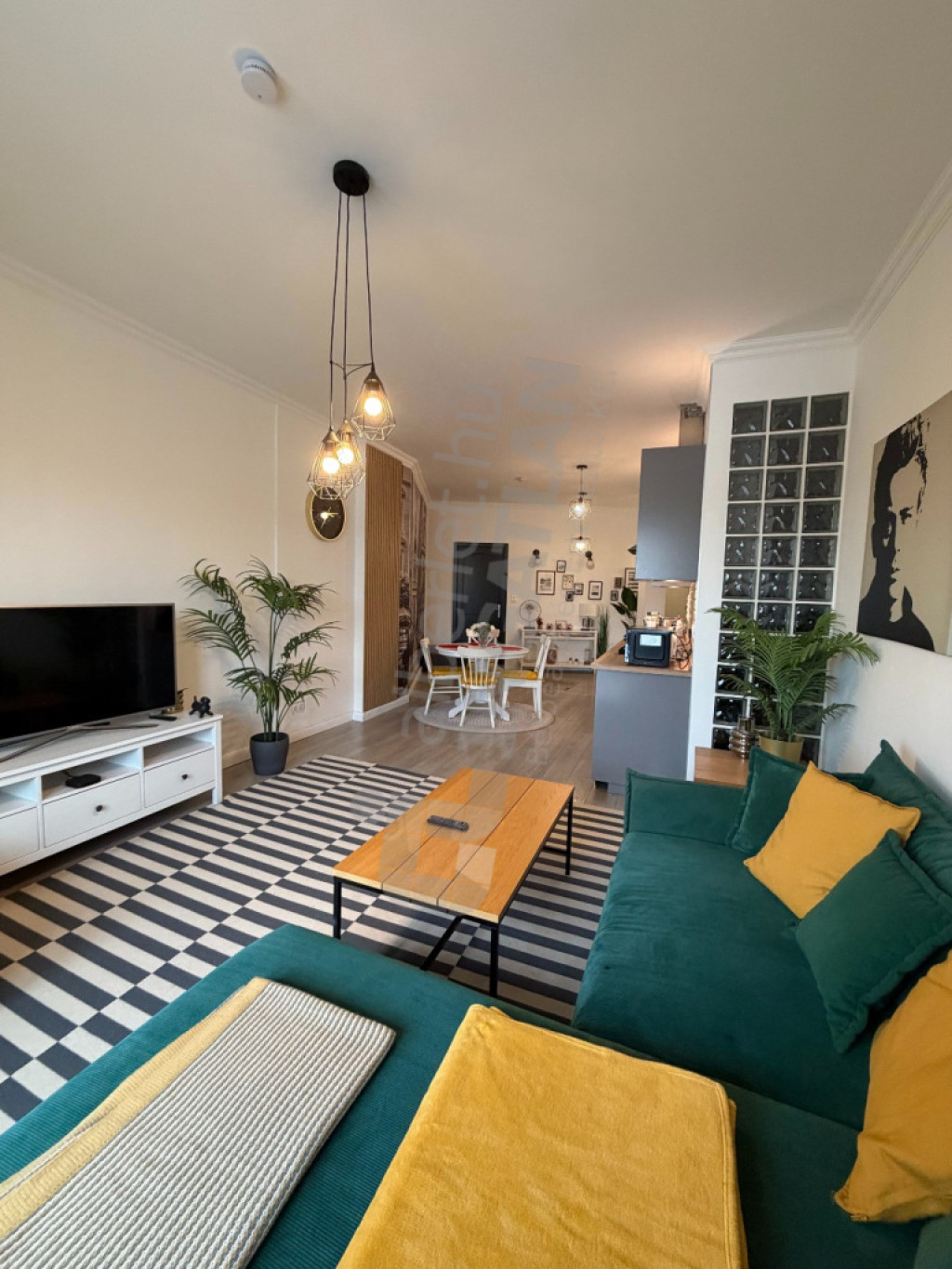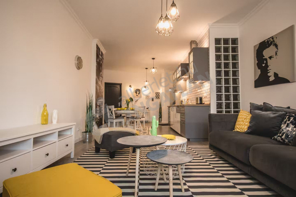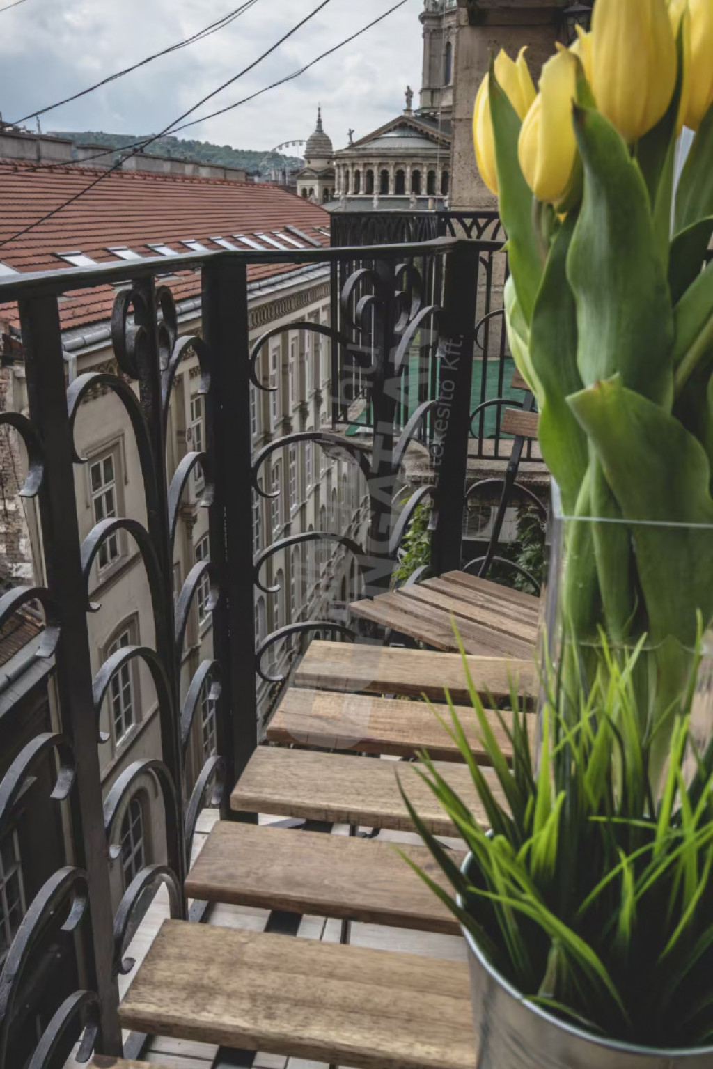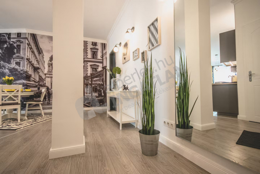 A lakás elrendezése ideális: tágas, amerikai konyhás nappalival, két külön nyíló hálószobával, egy fürdőszobával és egy külön vendég WC-vel, előszobával, valamint egy hangulatos erkéllyel rendelkezik, amely kellemes pihenőteret biztosít a belváros felett. A teljesen gépesített konyha és a légkondicionált kialakítás minden évszakban kényelmes, komfortos otthont biztosít. A magas emeletnek köszönhetően a lakás kifejezetten csendes és napfényes, a társasház rendezett, folyamatosan karbantartott.