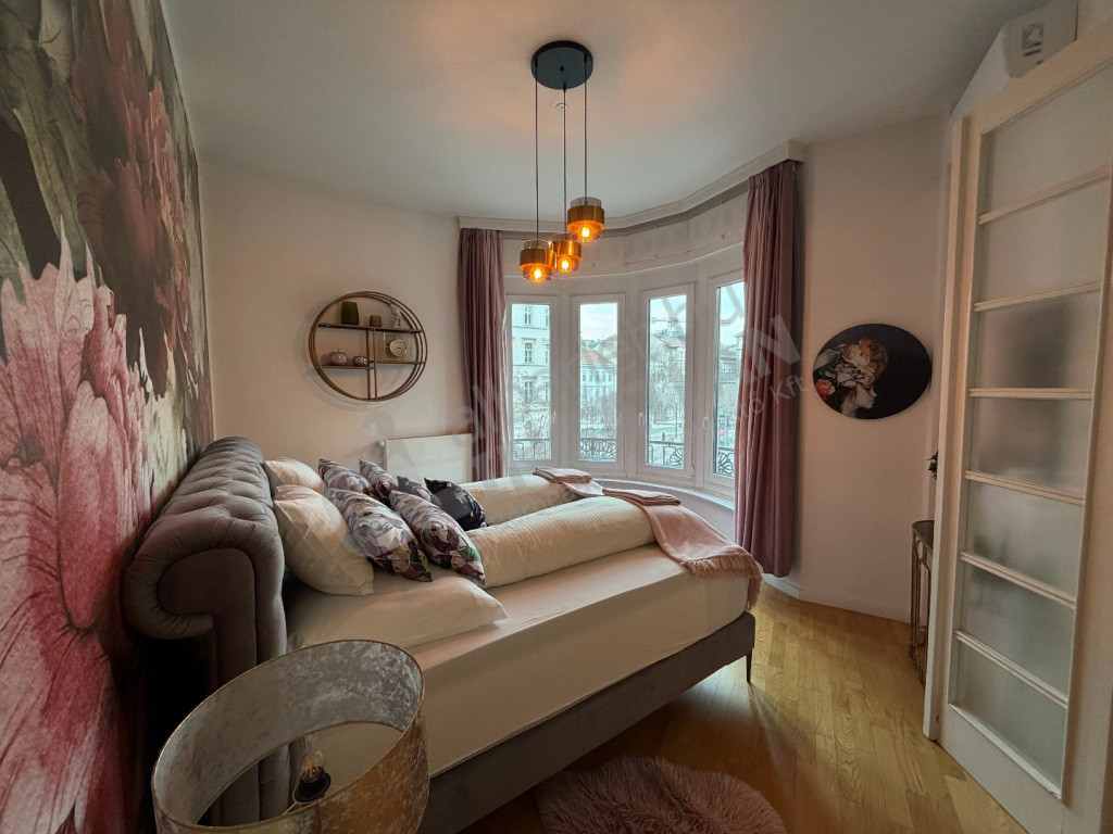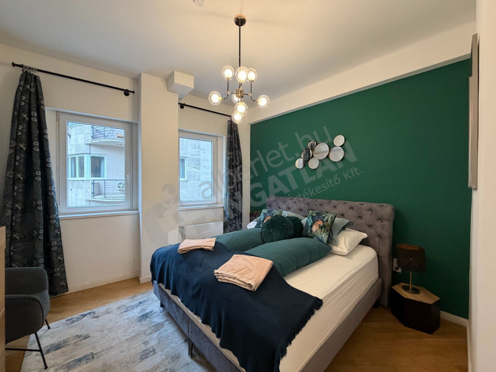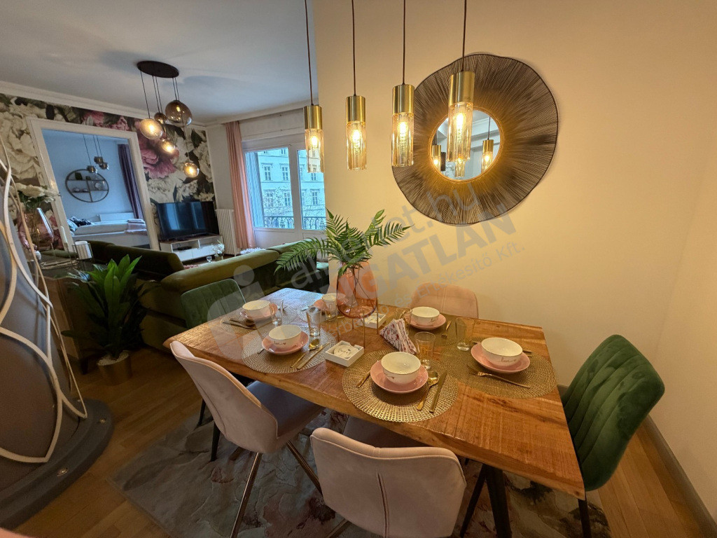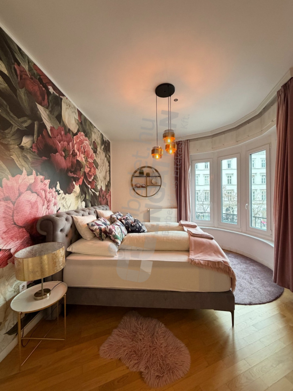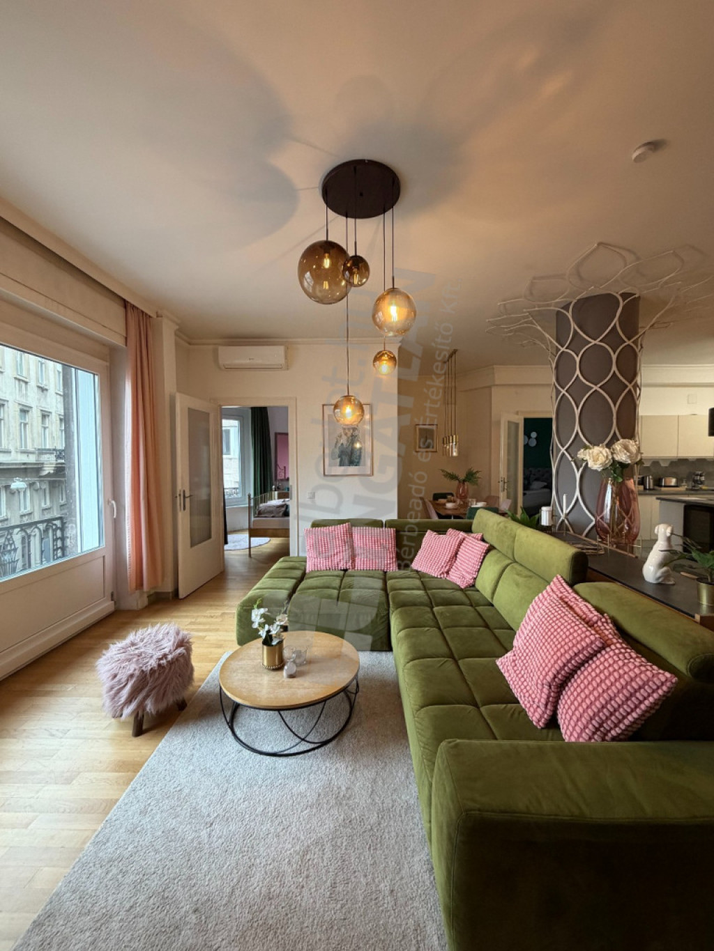 Kiadó a Bajcsy-Zsilinszky út egyik liftes társasházának második emeletén egy 115 m²-es, világos, erkélyes saroklakás, amelynek ablakai és erkélye a Podmaniczky Frigyes tér felé néznek, kellemes kilátást biztosítva.