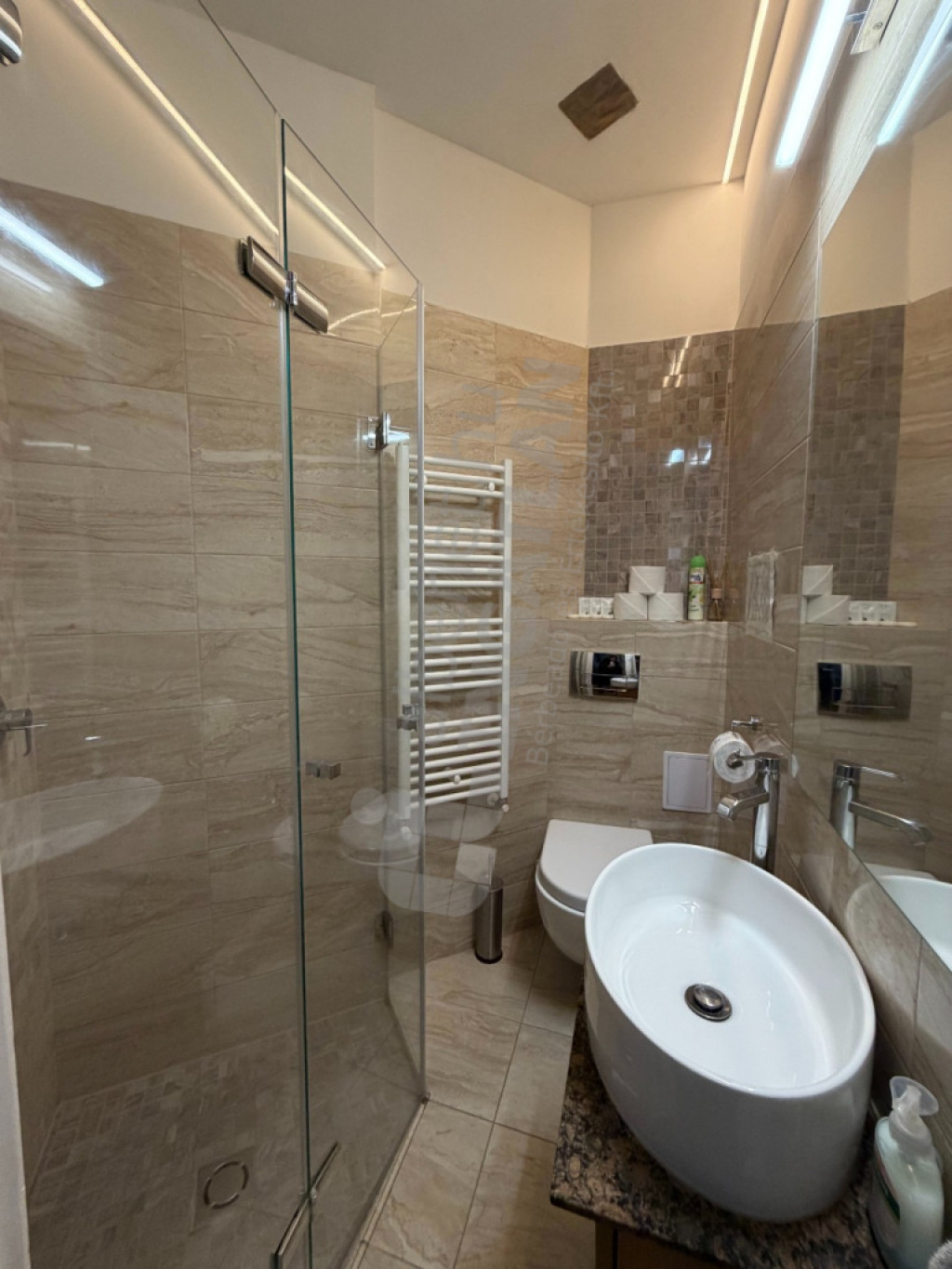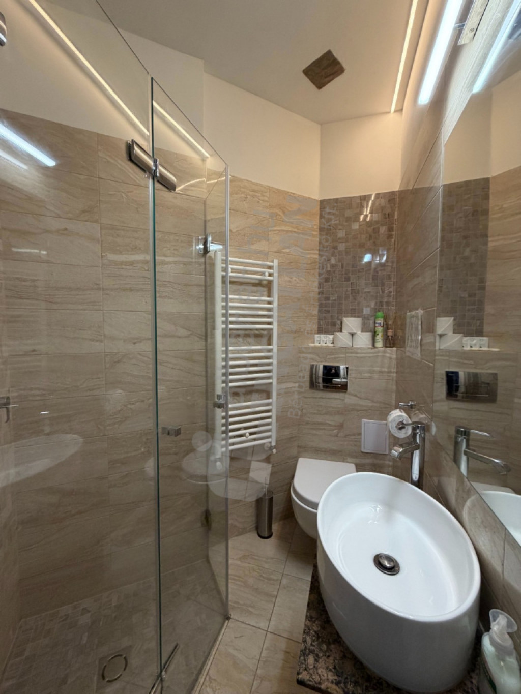 Az erkély tökéletes helyszínt nyújt egy reggeli kávéhoz vagy esti pihenéshez, miközben a belváros hangulata közvetlenül a lakás környezetében élvezhető. A környéken számos étterem, kávézó, üzlet és kiváló tömegközlekedési lehetőség található, így a lakás elhelyezkedése rendkívül praktikus.