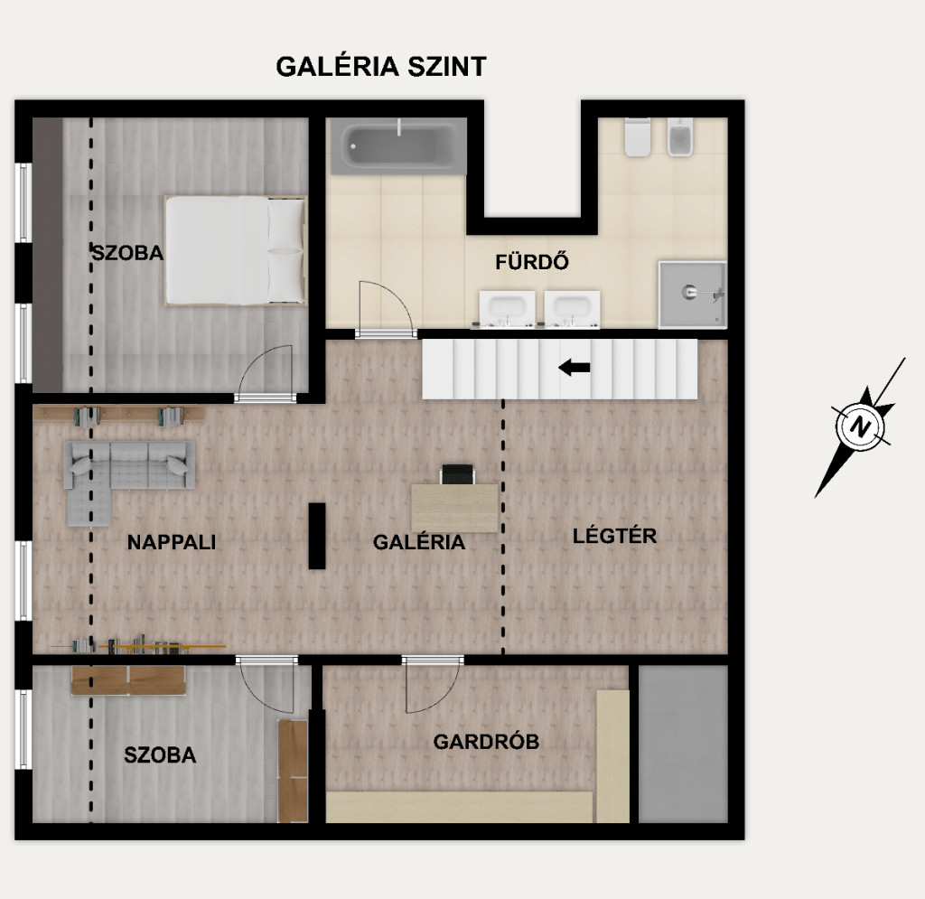 Kiadó egy belső kétszintes lakás a Bajza utcában, teljes berendezéssel.