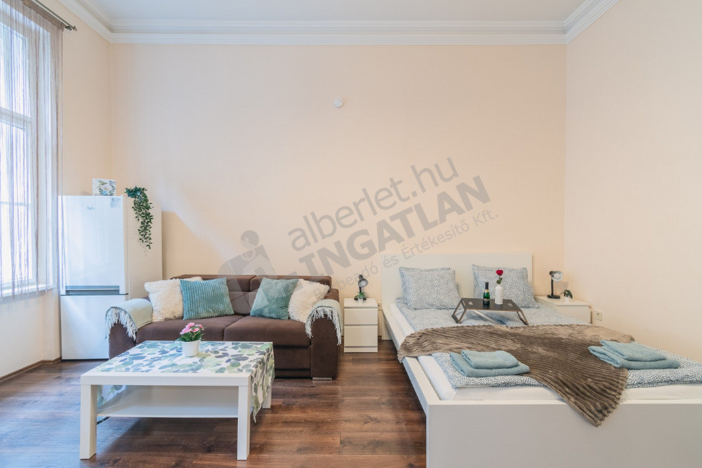 A VI.kerületben a Hegedű utcában kiadó egy FELÚJÍTOTT, világos, 1.emeleti( nincs lift ), 34 nm-es, 1 szobás lakás IGÉNYESEN BERENDEZVE és GÉPESÍTVE.