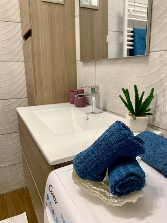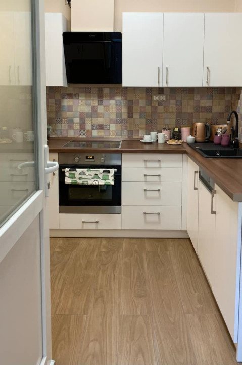 A konyha teljesen gépesített (mosogatógép, mosógép). A lakás biztonságát biztonsági bejárati ajtó és okos zár növeli.