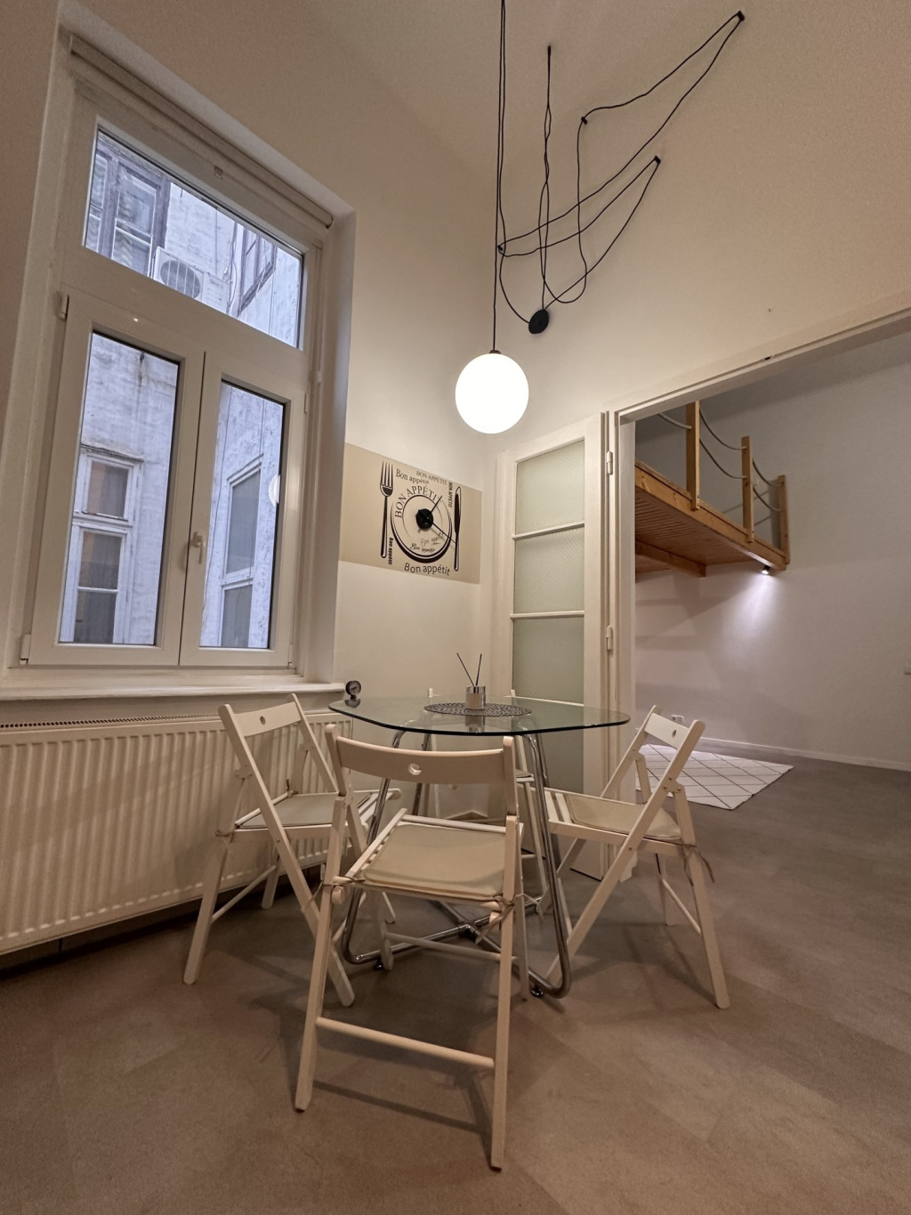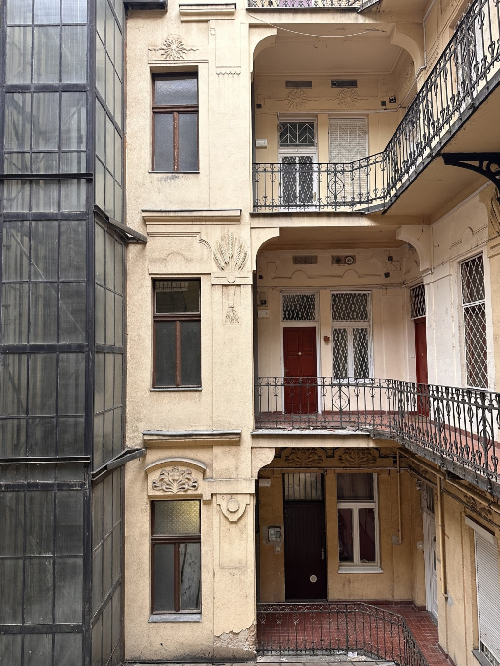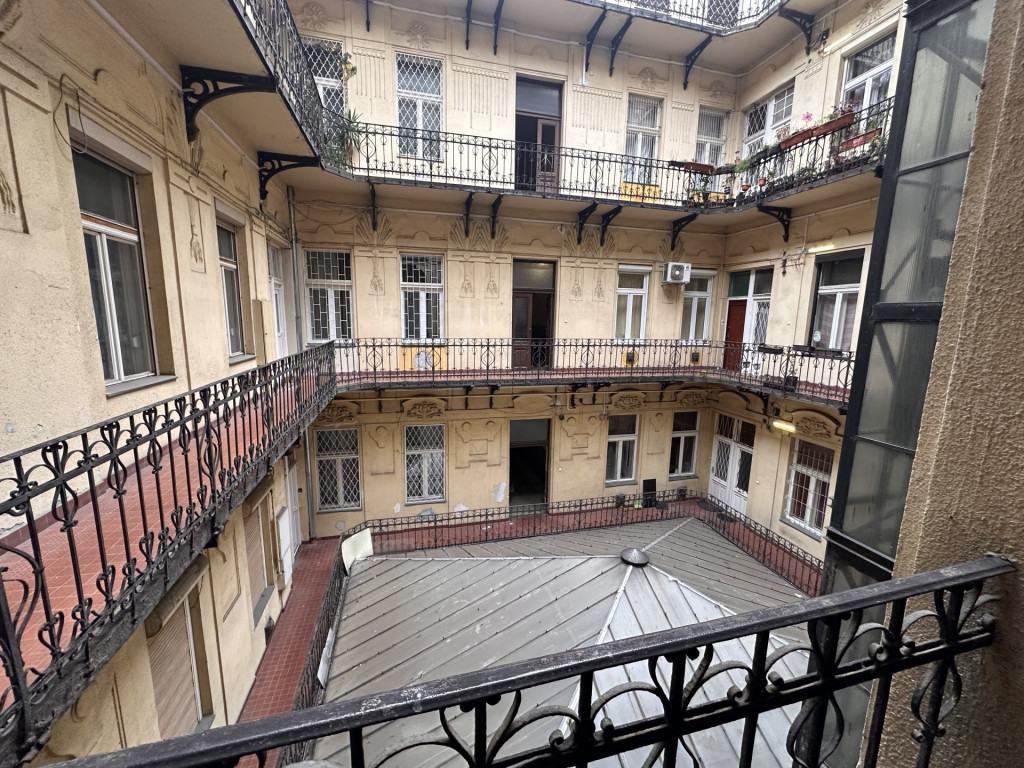 A lakás CSENDES, BELSŐ UDVARRA NÉZ, mégis a belváros szívében található. Jellemzői: nagy belmagasság (kb. 4 m), nappali + háló + állógaléria, külön konyha, sarokkádas fürdő WC-vel és bidével.