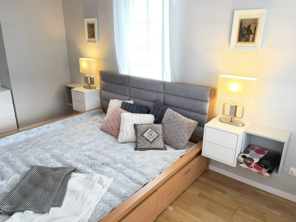 A lakás elosztása: 3 SZOBÁS (nappali + 2 háló), 2 FÜRDŐSZOBÁS (káddal és zuhanyzóval), valamint 2 ERKÉLLYEL felszerelt. Az ingatlan TELJESKÖRŰEN GÉPESÍTETT ÉS SZÉPEN BERENDEZETT, minden szobában LÉGKONDI található. A lakáshoz MÉLYGARÁZS tartozik melyet KÖTELEZŐ bérbevenni a lakáshoz( ára: 40.000Ft/hó)