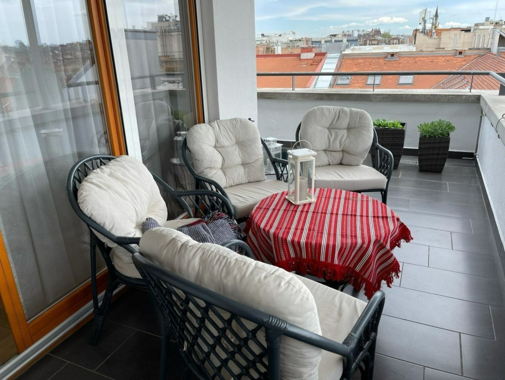 A lokáció ABSZOLÚT BELVÁROSI, karnyújtásra a pezsgő kulturális élettől, mégis TELJESEN CSENDES, mivel belső udvarra néz és csak egy szomszédja van.