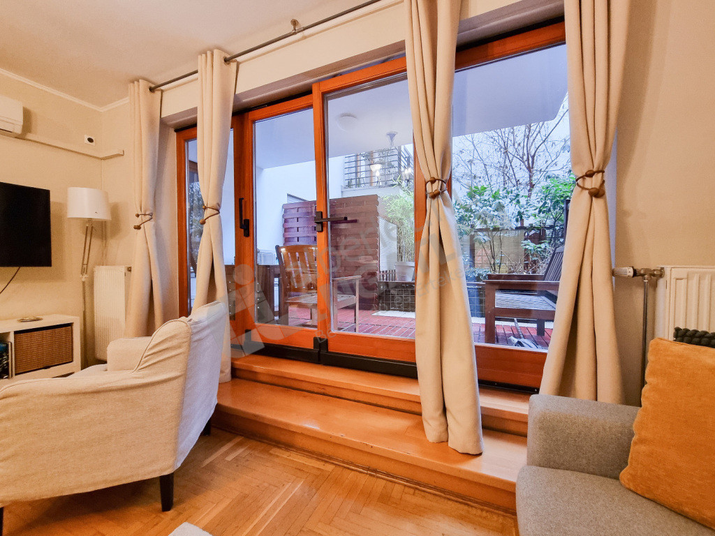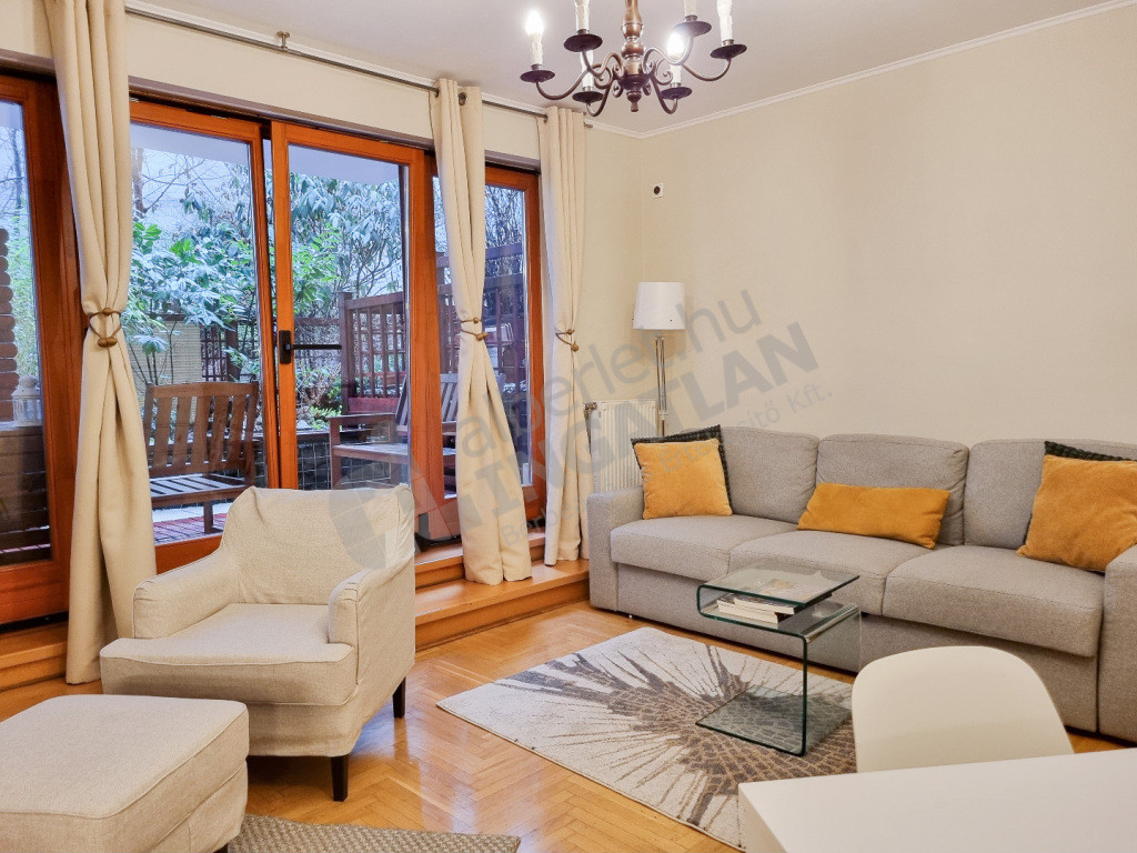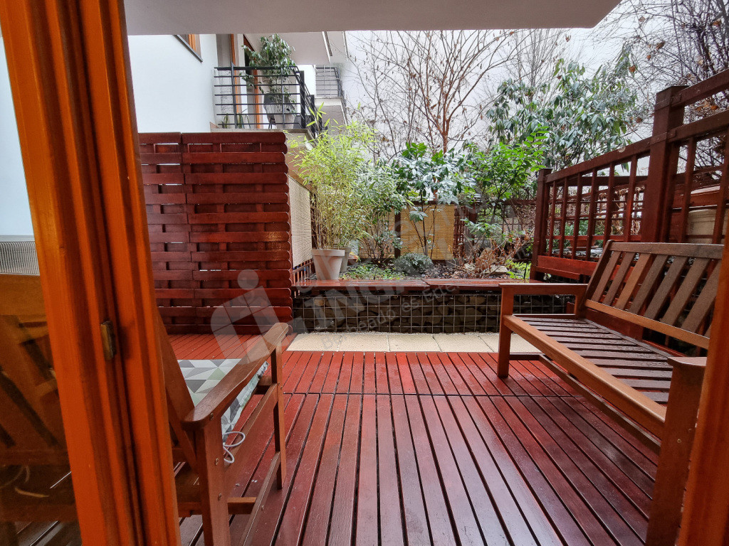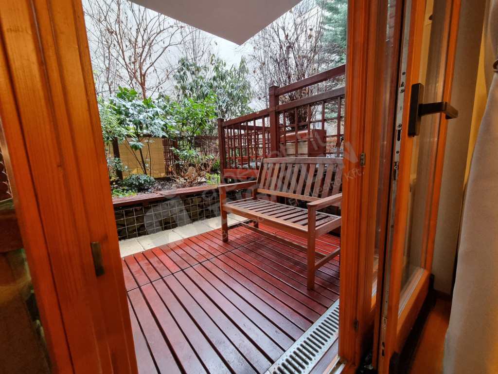 A nappaliból NAGY TERASZ (11 m²) nyílik, valamint SAJÁT KERT (12 m²) is tartozik a lakáshoz.