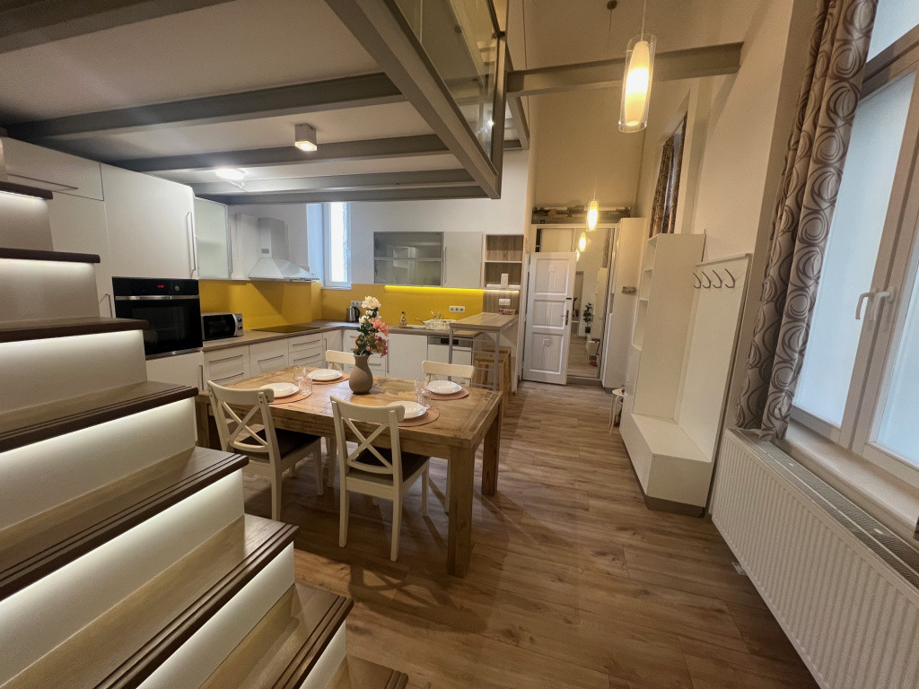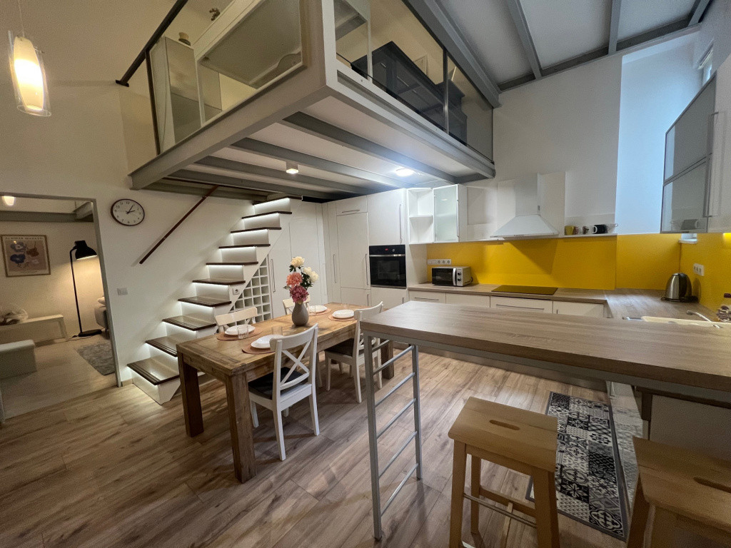 A lakás kitűnő helyen, Pest nyüzsgő kulturális központjában, színházak, remek éttermek és galériák szomszédságában található.