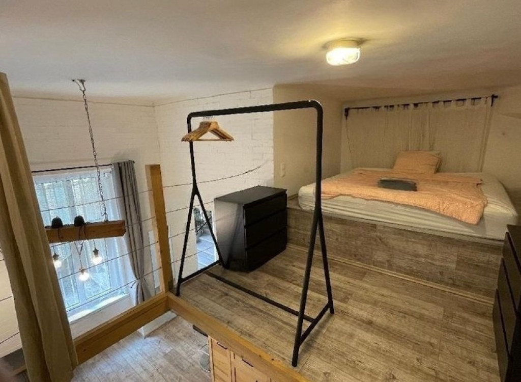Egy galéria, konyha, nappali, wc és fürdő szoba egy helységben található.