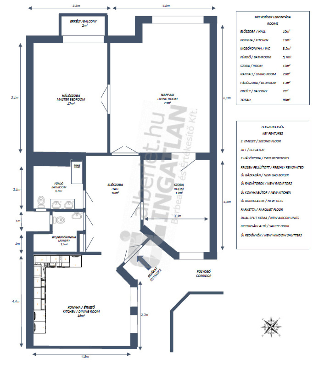 - A lakás TELJESEN FELÚJÍTOTT - új a villany- és vízhálózat, felújított fűtési rendszer - a hálószobákban gyönyörűen felújított, eredeti parketta