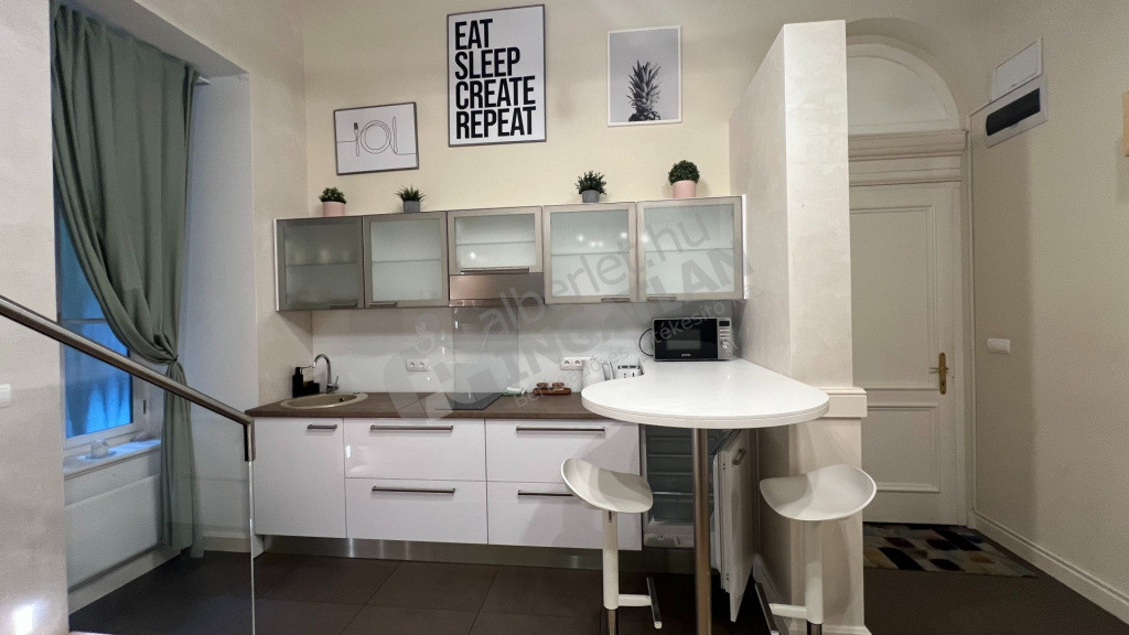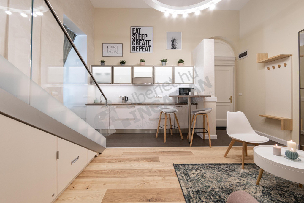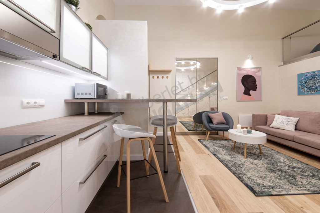 1 szoba, és a nagy belmagasságnak köszönhetően ÁLLÓ GALÉRIÁZOTT.
