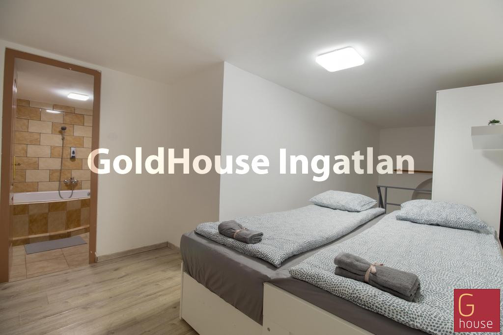 A két szoba külön nyílik, mindkettő galériás, mely átjárható, de ajtóval leválasztott, így gyakorlatilag 4 helyiséges, kb. 78 nm-es a hasznos terület. Előszoba-konyha egyben van. A földszinten egy zuhanyzós fürdőszoba van, az emeleten pedig kádas fürdőt alakítottak ki.