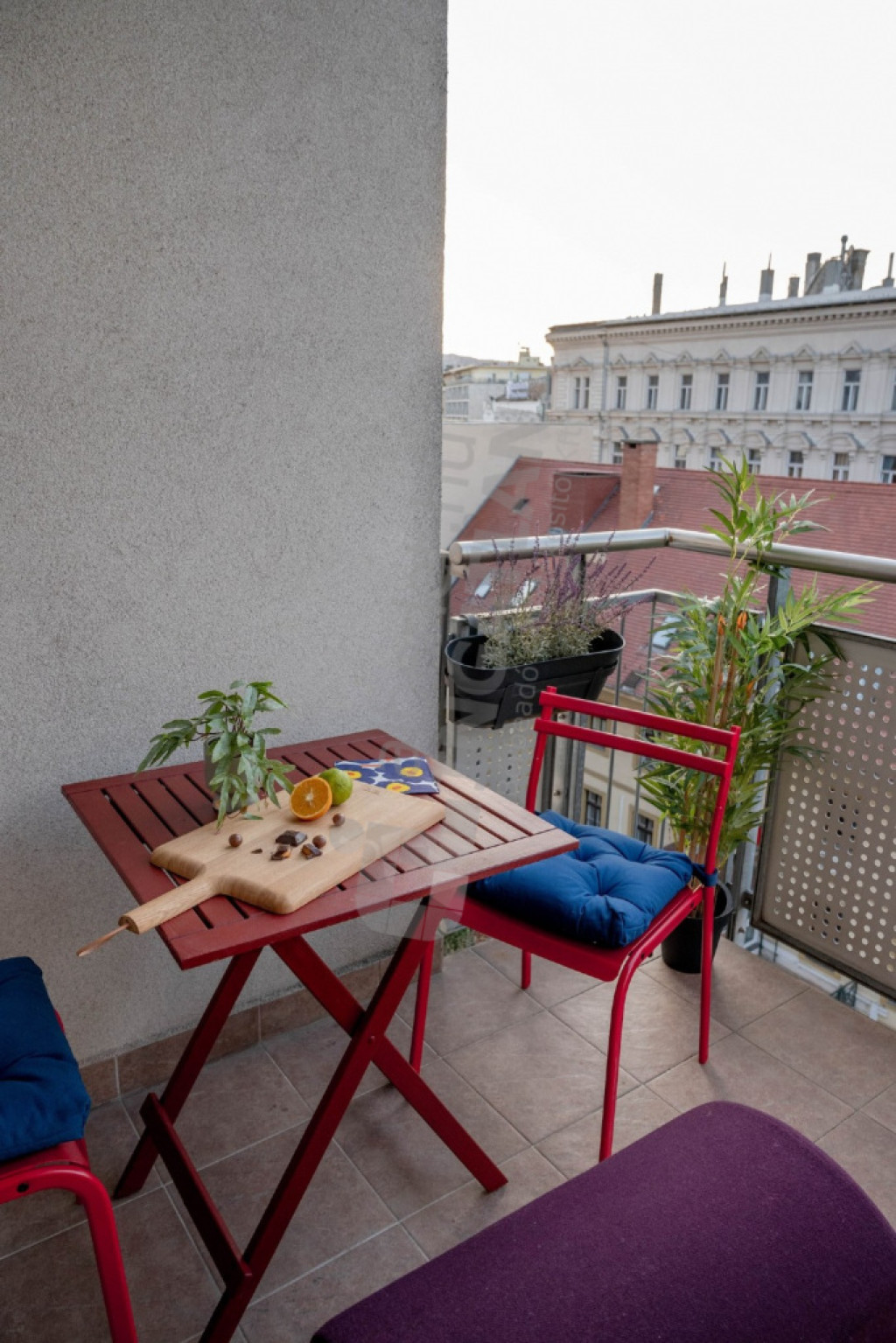 - 7 négyzetméteres erkély, mely csendes belső udvarra és a Szent István Bazilika impozáns kupolájára néz