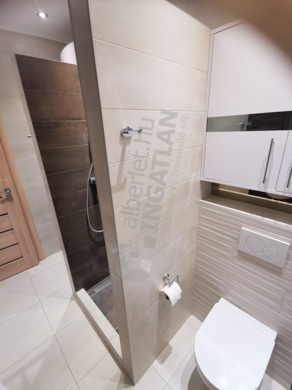 Zuhanyzós fürdőszoba toalettel.