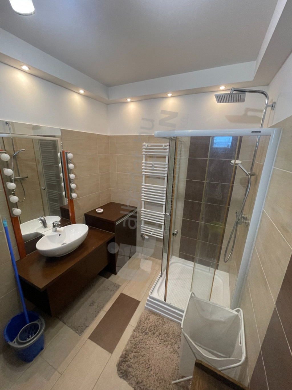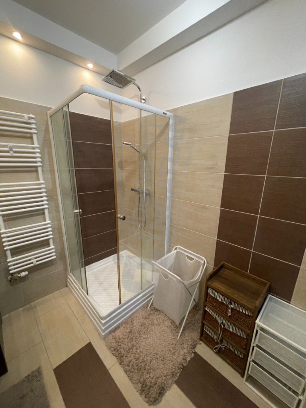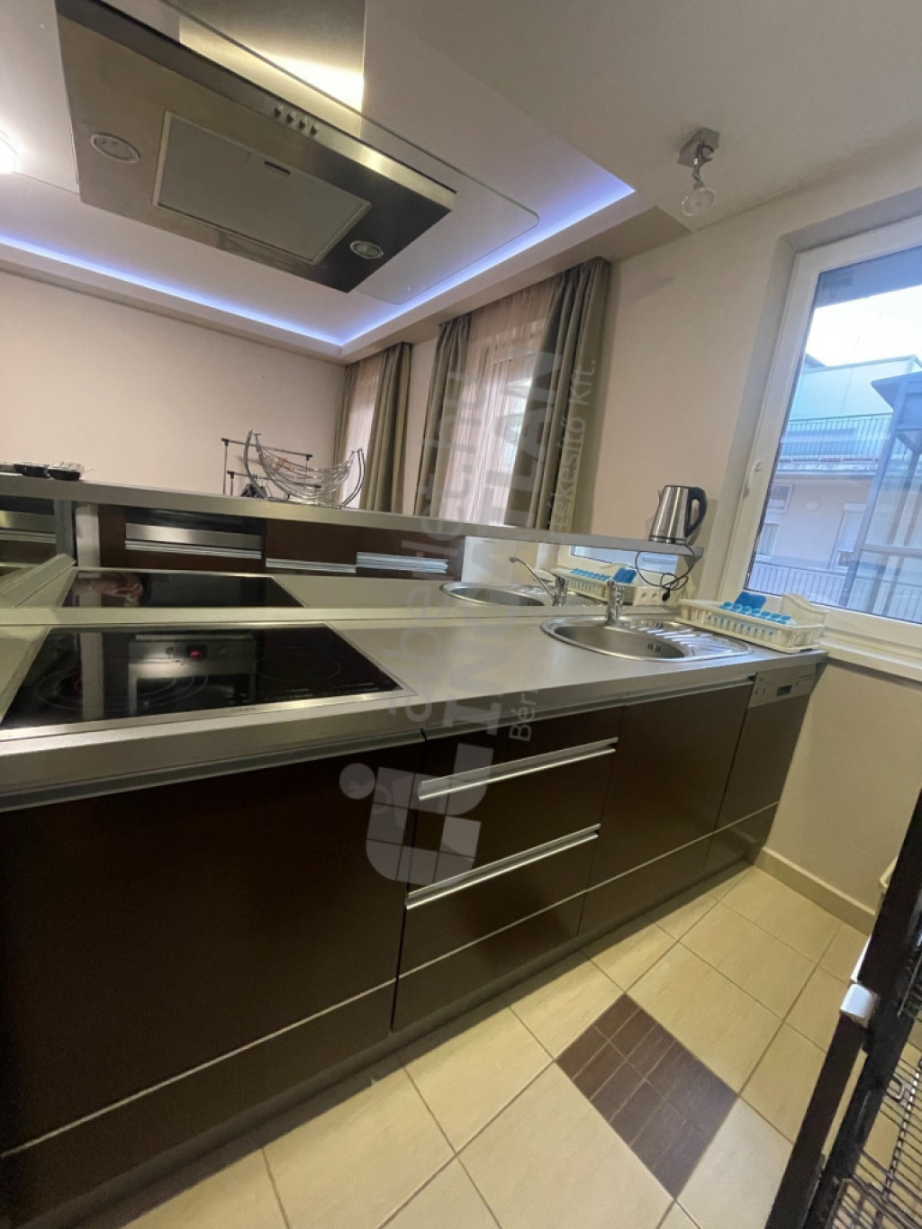 Lent található a teljesen gépesített (beépített hűtő, MOSOGATÓGÉP, sütő, mikró, kerámia főzőlap, páraelszívó) amerikai konyhás nappali és a tágas fürdőszoba (zuhanykabin, WC, beépített szekrény.). Külön MOSÓKONYHÁVAL, tárolóval rendelkezik a lakás.