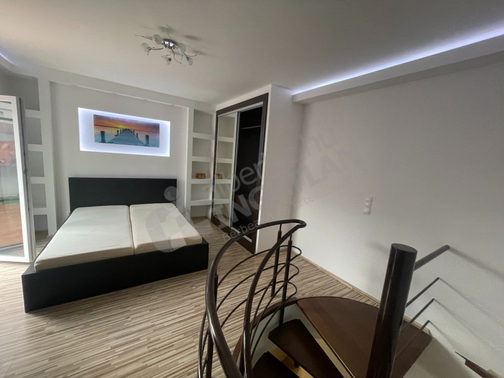 A BELSŐ KÉTSZINTES lakás felső részén található a hálószoba, ahonnan nyílik a kizárólagos használatú, tágas 22 nm-es TETŐTERASZ.