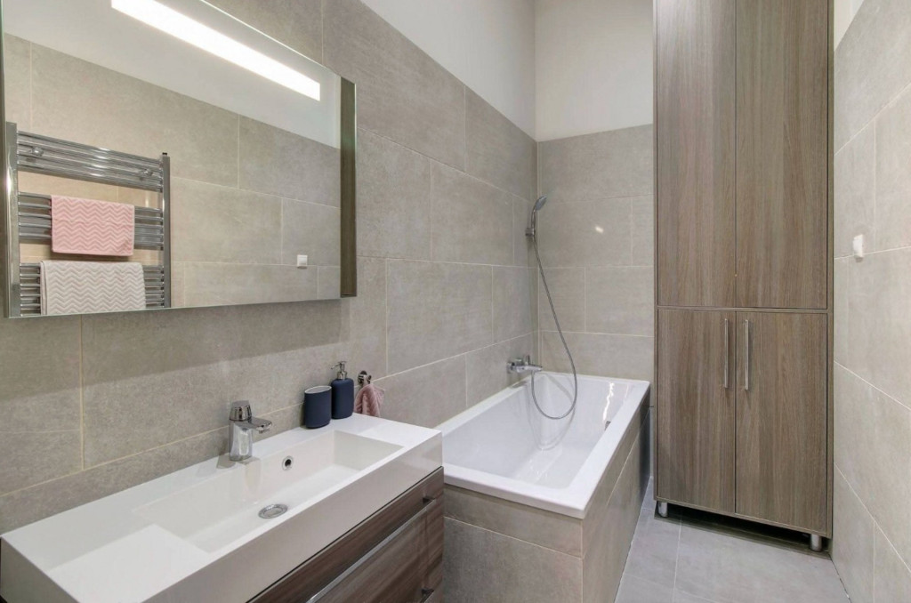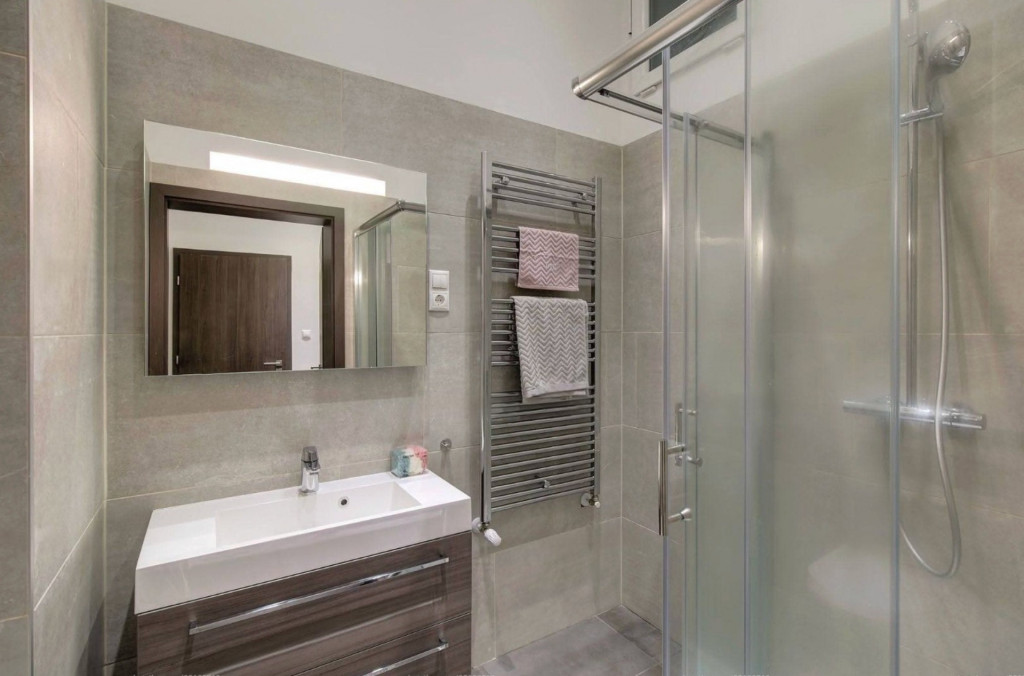A lakás BÚTOROZOTT és GÉPESÍTETT, KLÍMÁVAL felszerelt. A lakásban egy zuhanyzós és egy kádas fürdőszoba is található.