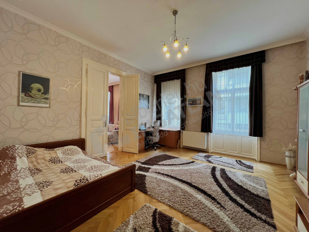 VI. kerület, Szív utcában 110 m2-es 3 szobás + hall 2 nagy szoba, 1 kisebb hálószoba, VILÁGOS, IGÉNYESEN BÚTOROZOTT, GÉPESÍTETT, KLÍMÁS, KAMRA, (1,5 m2-es) GARDROBSZOBÁS (10m2-es) lakás azonnali költözéssel kiadó.