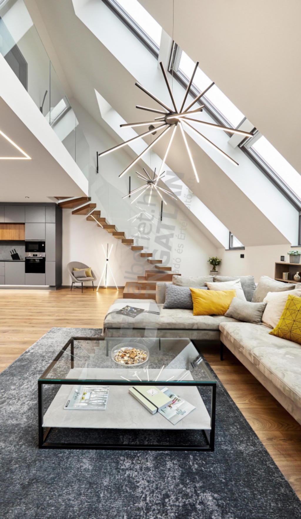 A lakás teljes területén mennyezethűtés/fűtés rendszer került kialakításra.