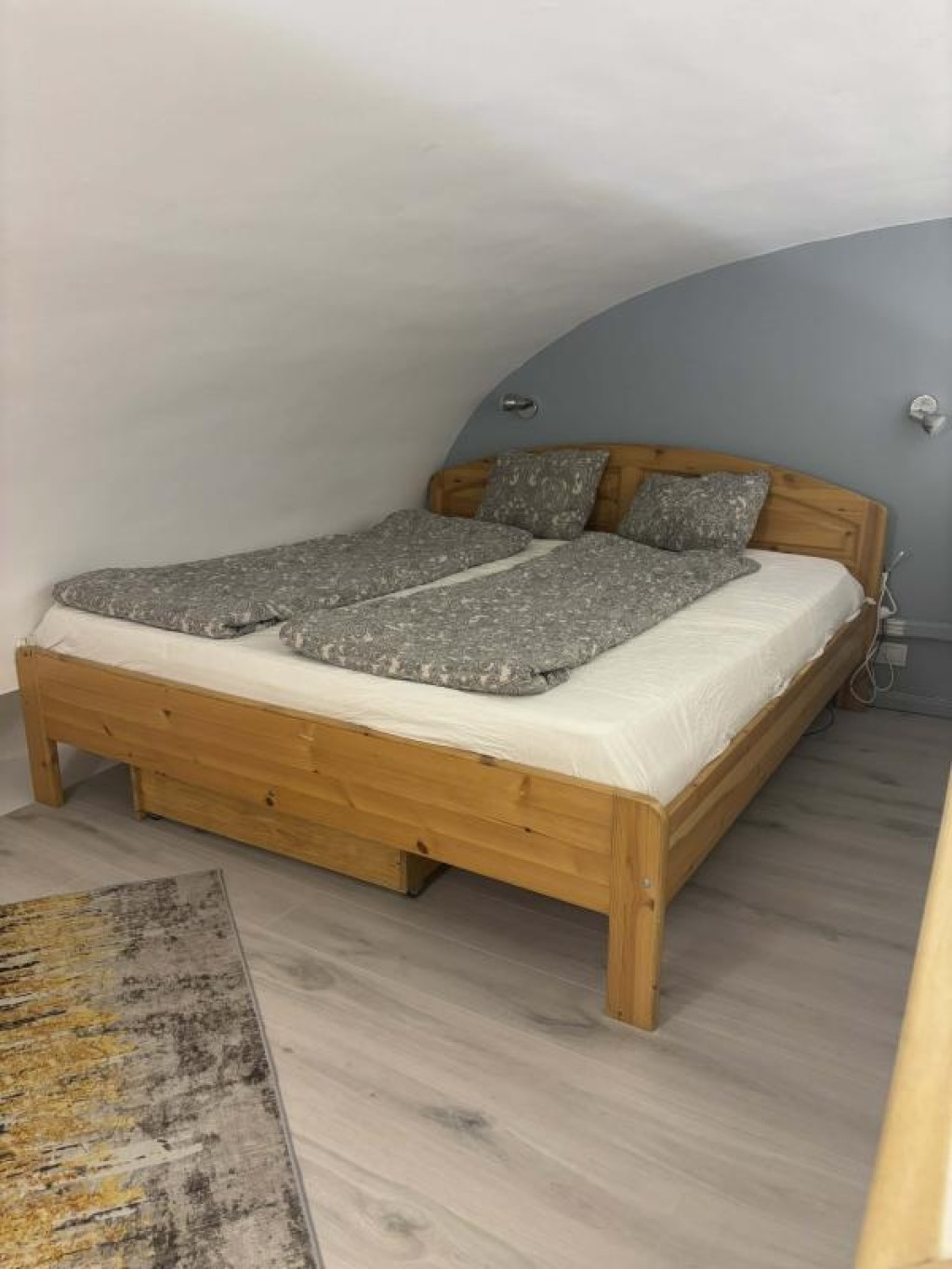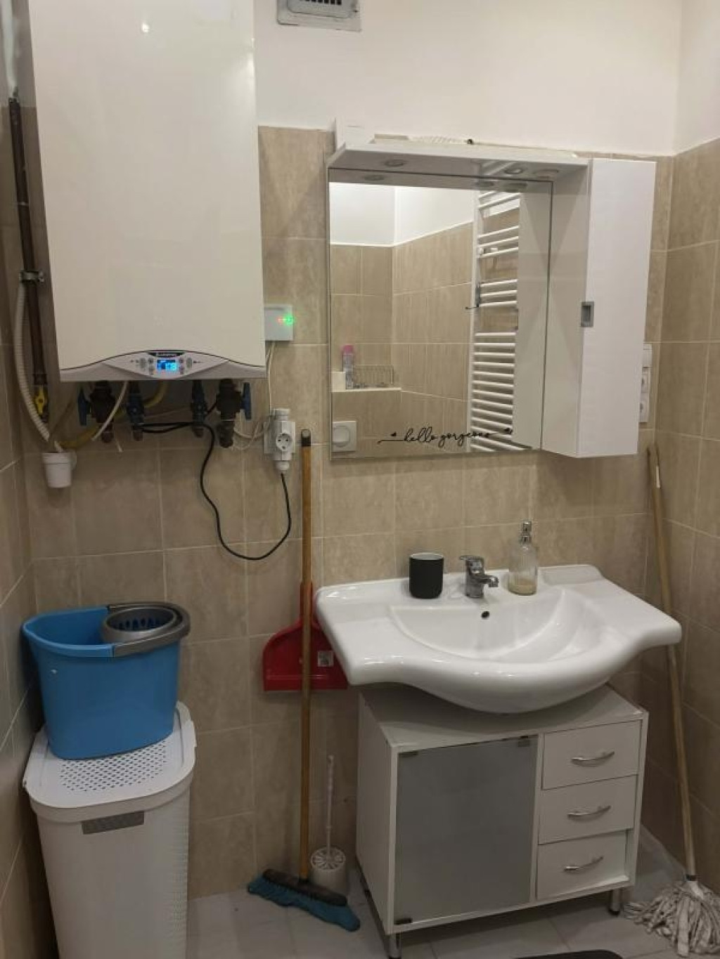 A fürdőszoba (zuhanyzós) és a mellékhelyiség egy légtérben található.