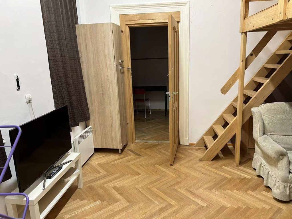 Kiadó Budapest VII. kerület, Almássy utca egy gyönyörű, NAPFÉNYES, nagy belmagasságú, 42 m²-es, 2 szobás, bútorozott lakás.