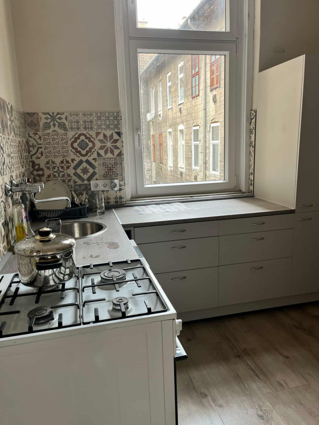Kiadó a Dembinszky utca végén egy 2.emeleti (lift van), belső udvarra néző, 63 négyzetméteres, csendes lakás. Az ingatlanban 2 külön bejáratú szoba van, az egyikből egy gardróbszoba is nyílik. A szobákon kívül a konyha és a fürdő is teljesen felújított. Gázfűtéses. A nagyobbik szobában légkondi is van.