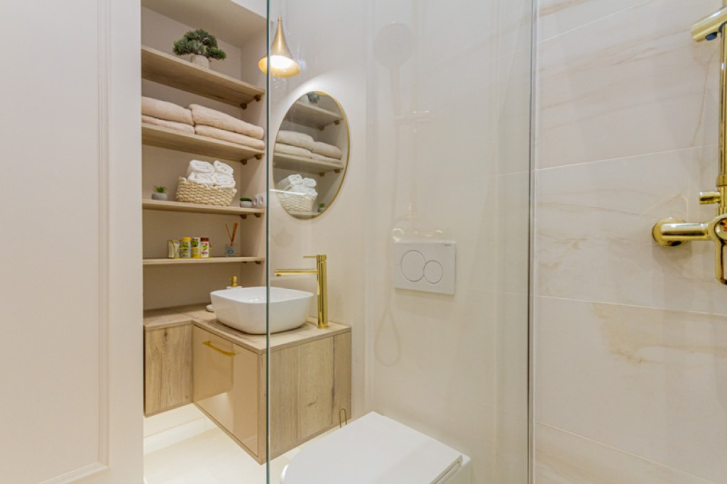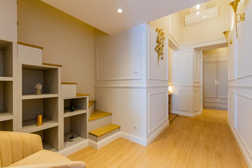 Az ingatlan amerikai konyhás nappalival és a galérián hálószobával rendelkezik. Márványburkolatú fürdőszobával üvegfalú zuhanyzóval, padlófűtéssel, 2 klímával, beépített gardróbbal, igényes bútorokkal, a meleg bézs/arany tónusok és a zöld színek tökéletes kombinációjával.