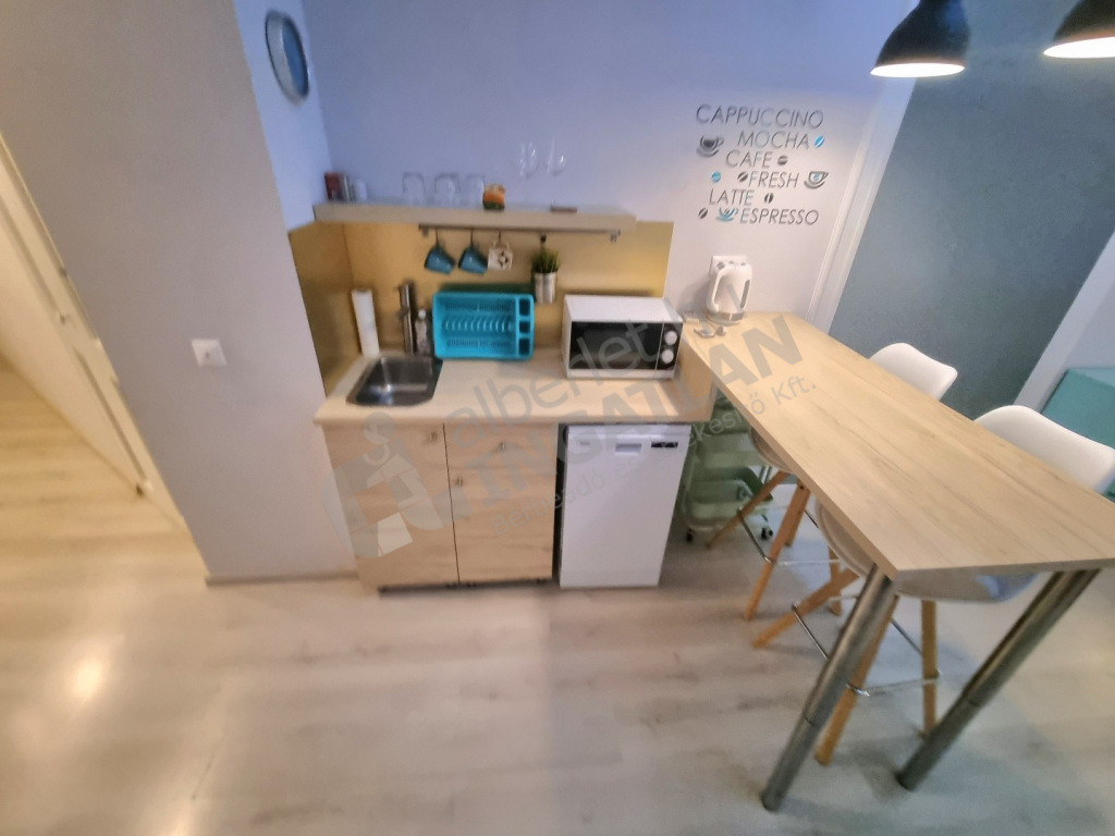 Az elrendezés praktikus: szoba, amerikai konyhával, fürdőszoba és WC egyben. A fűtést gázcirkó, a melegvizet villanybojler biztosítja, a lakás klimatizált. A közös költség mindössze 10.000 Ft/hó, a rezsi alacsony, kb. 10.000 Ft/hó.