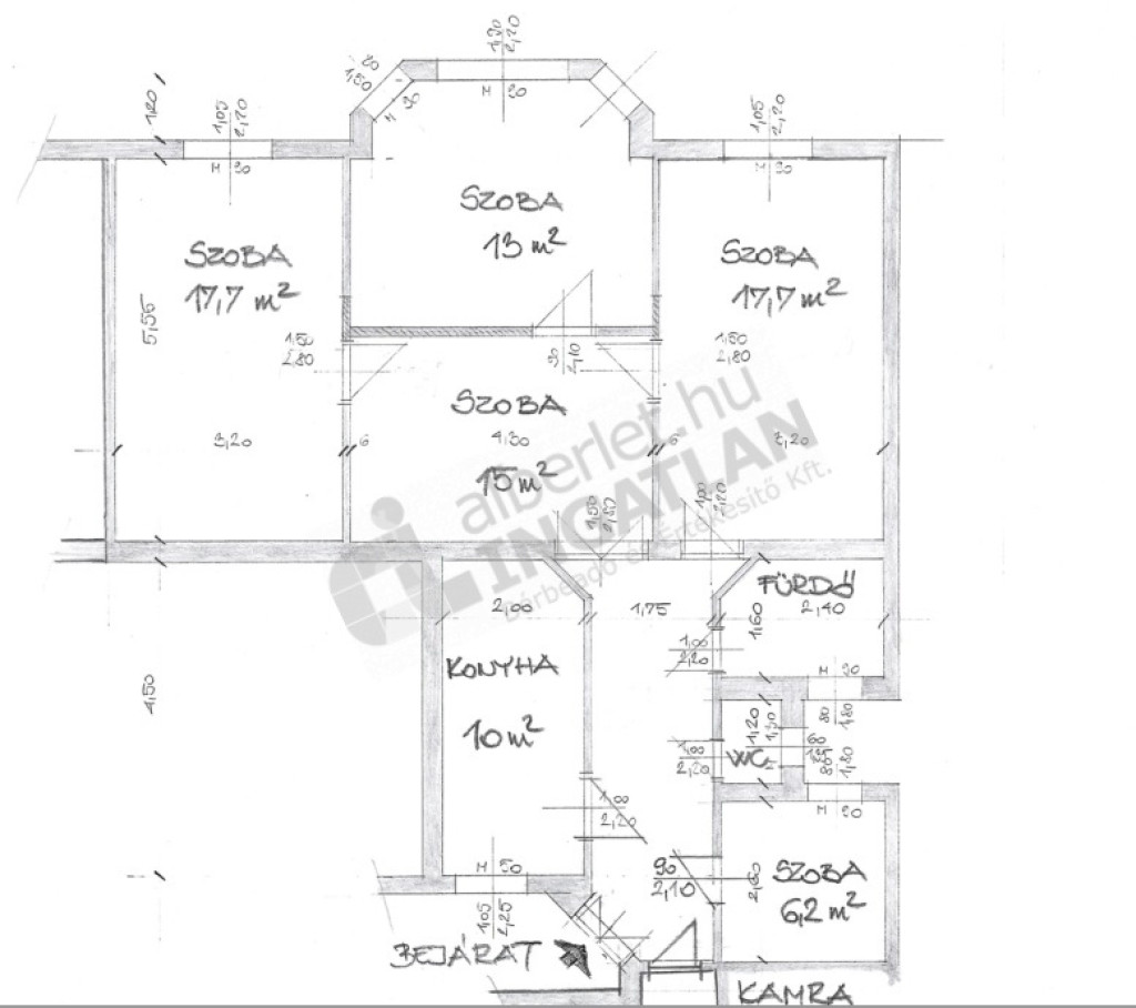 Három külön nyíló nagy szoba, és egy félszoba, valamint egy közös helyiség.
