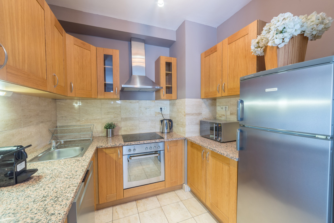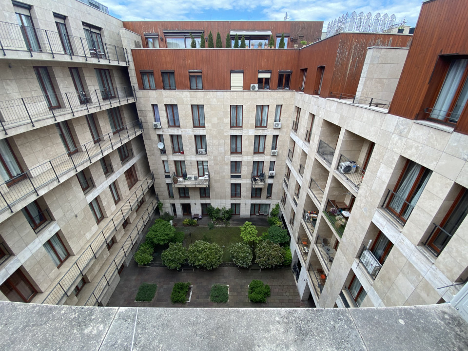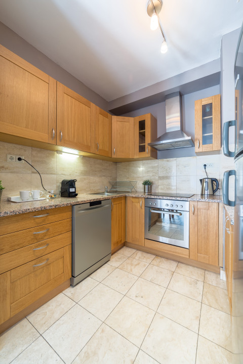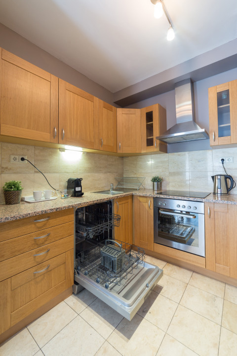 A lakás csendes, nyugati fekvésű, belső kertre néz, így a város pezsgése mellett is nyugodt életteret biztosít. A tágas, márvánnyal burkolt fürdőszoba kádas és esőztető zuhannyal is felszerelt. A konyha teljesen gépesített: családi méretű hűtő és fagyasztó, sütő, mosogatógép, indukciós főzőlap, valamint minden szükséges háztartási berendezés rendelkezésre áll. A lakás klimatizált, fiatalos hangulatú, azonnal költözhető.